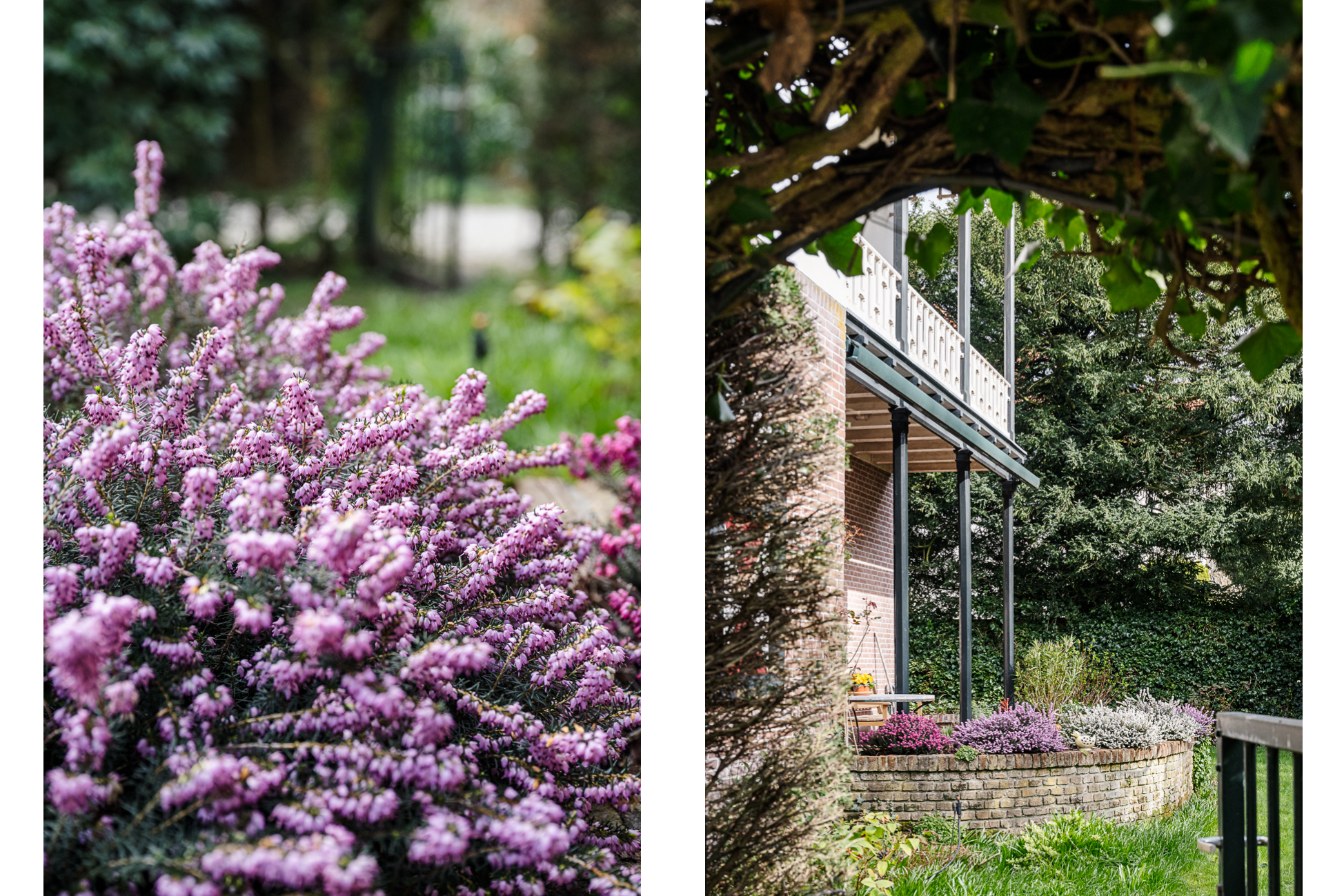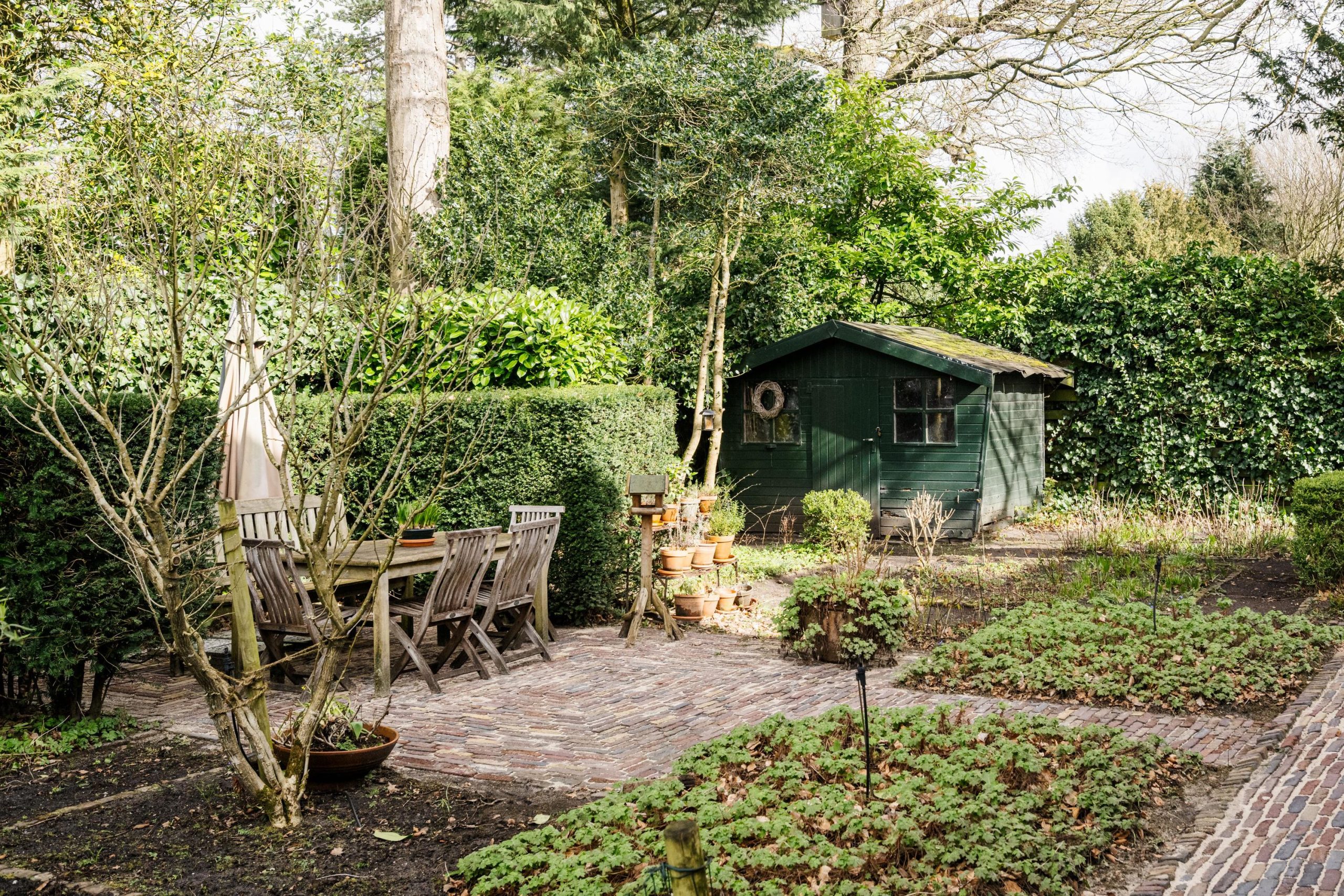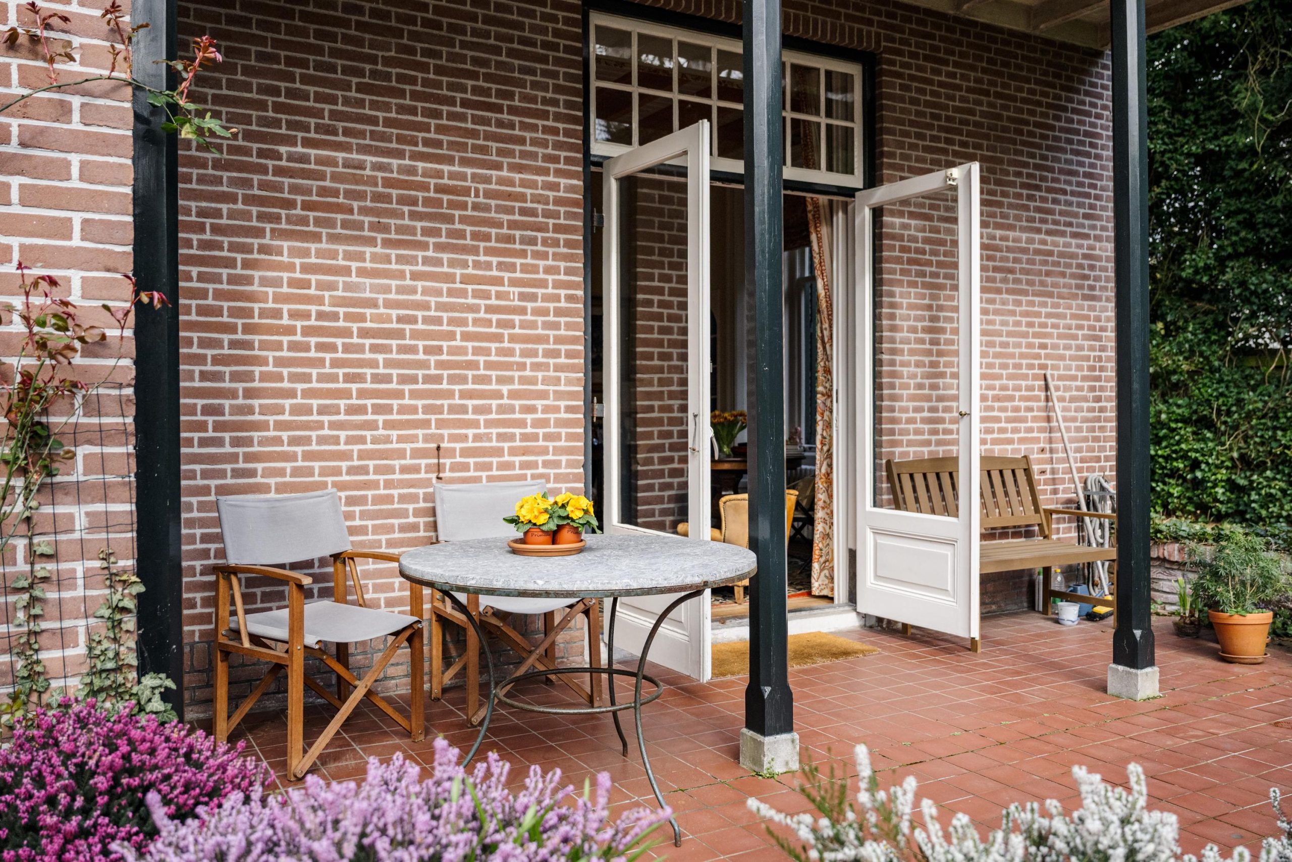 De tuin ligt rondom de woning en biedt op elk moment van de dag zon en privacy. Aan de voorzijde ligt een zonnig terras bij de veranda, terwijl de achtertuin juist ideaal is voor de middag en avondzon.