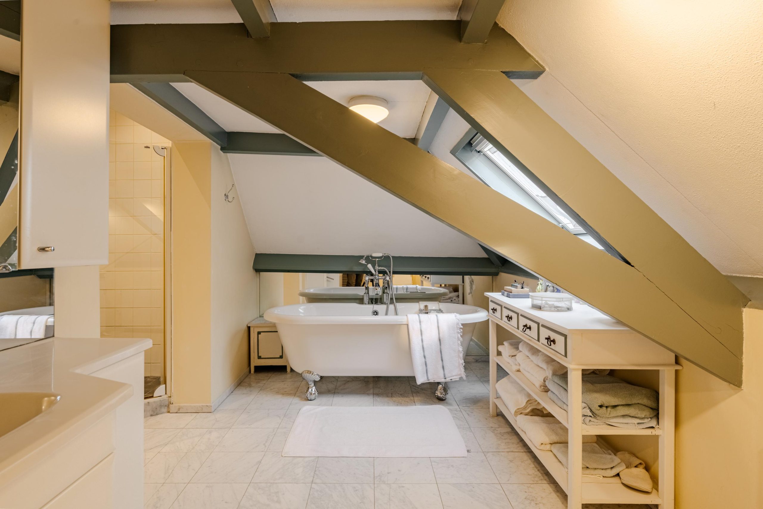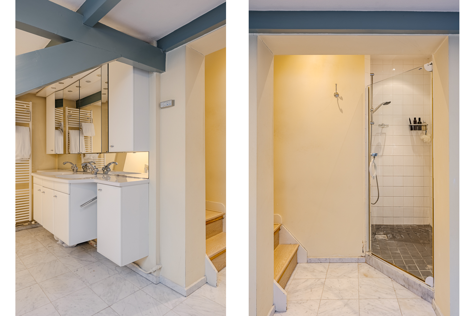 De hoofdslaapkamer beschikt over een royale kastenwand en een eigen badkamer met vloerverwarming, ligbad, inloopdouche en dubbele wastafel. Daarnaast is er een tweede badkamer met douche en wastafel, wat deze woning zeer geschikt maakt voor gezinnen of gasten.