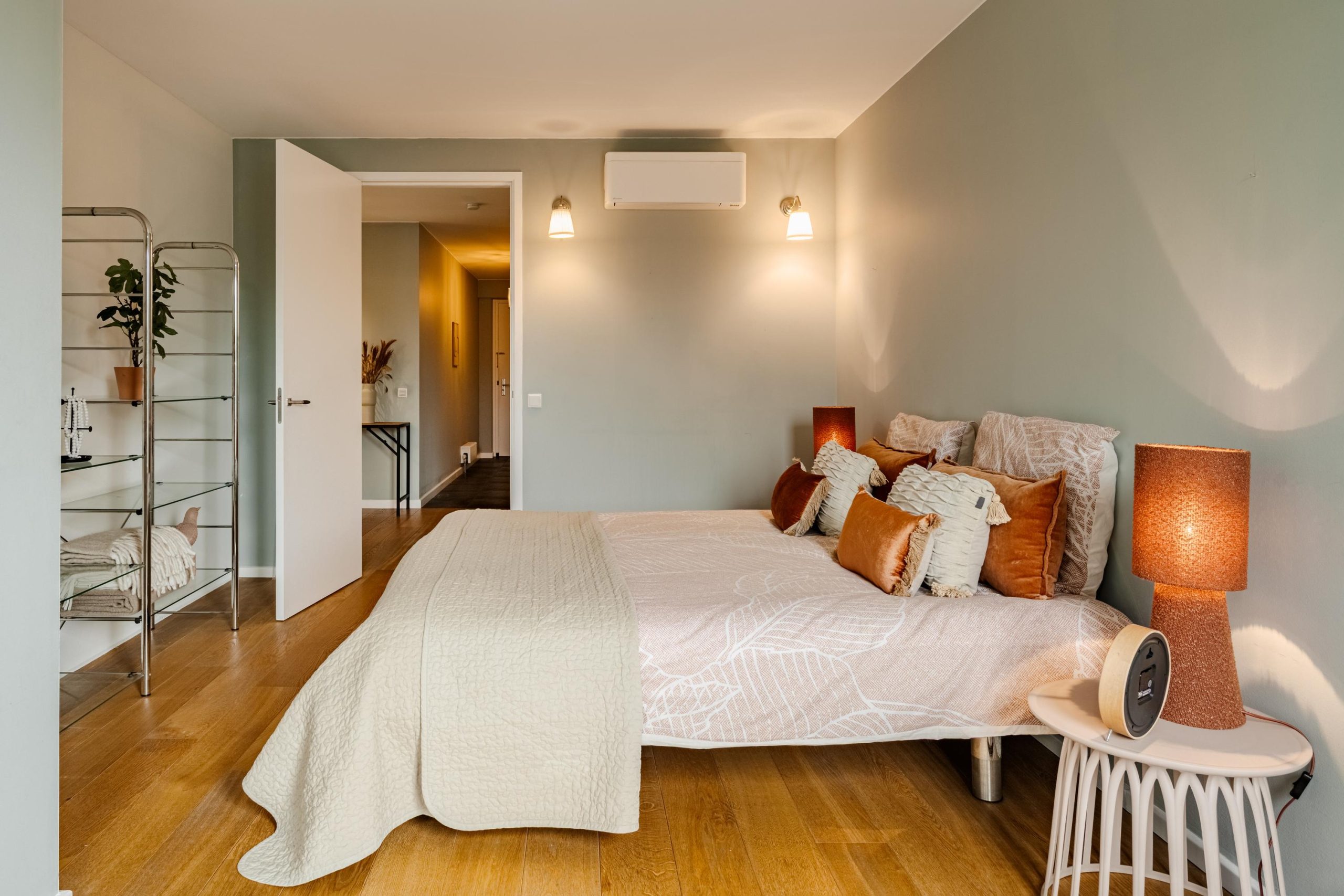 De master bedroom is ruim, rustig en voorzien van airconditioning. Tweede slaapkamer, grenzend aan de woonkamer, is ook voorzien van airconditioning. Deze ruimte is geschikt als logeerkamer, kantoor of kinderkamer.