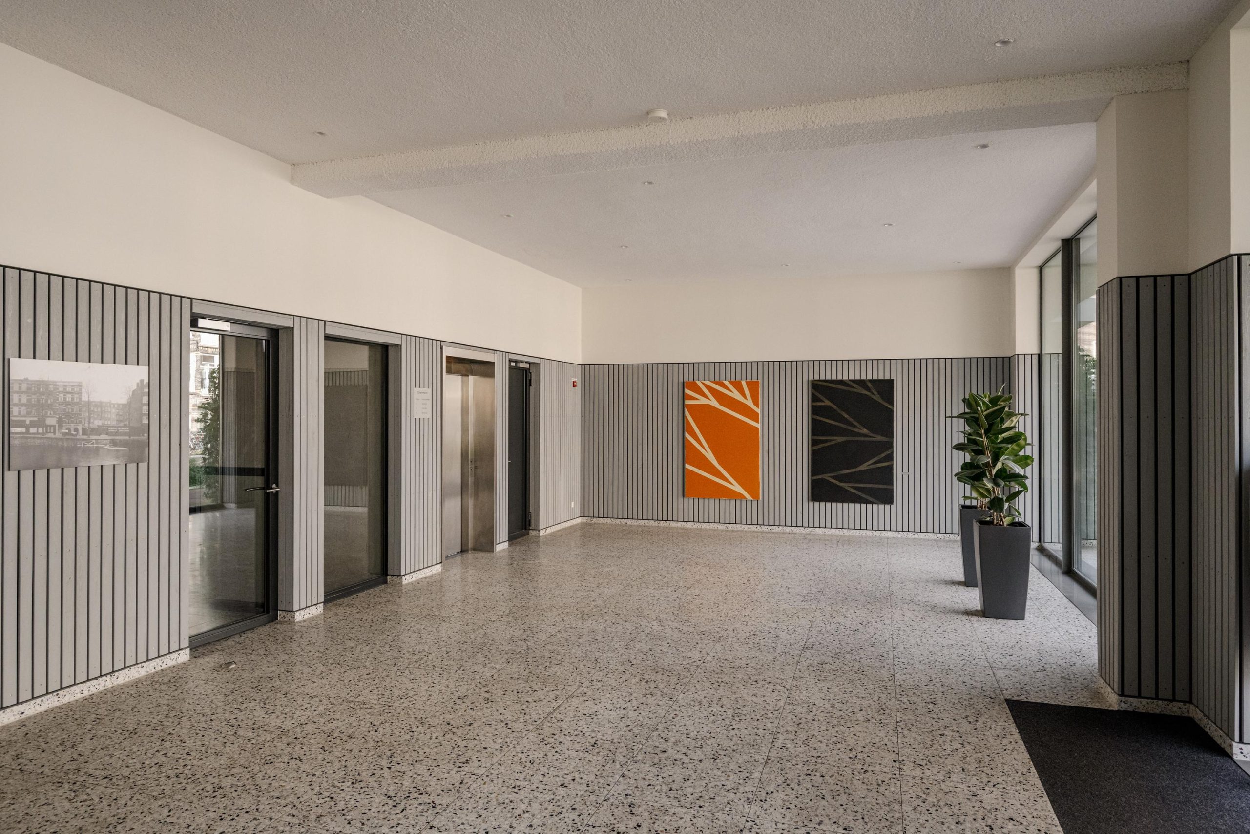 Toegang tot het appartement via de representatieve, gemeenschappelijke entree met lift en trappenhuis die tot de tweede verdieping gaat.