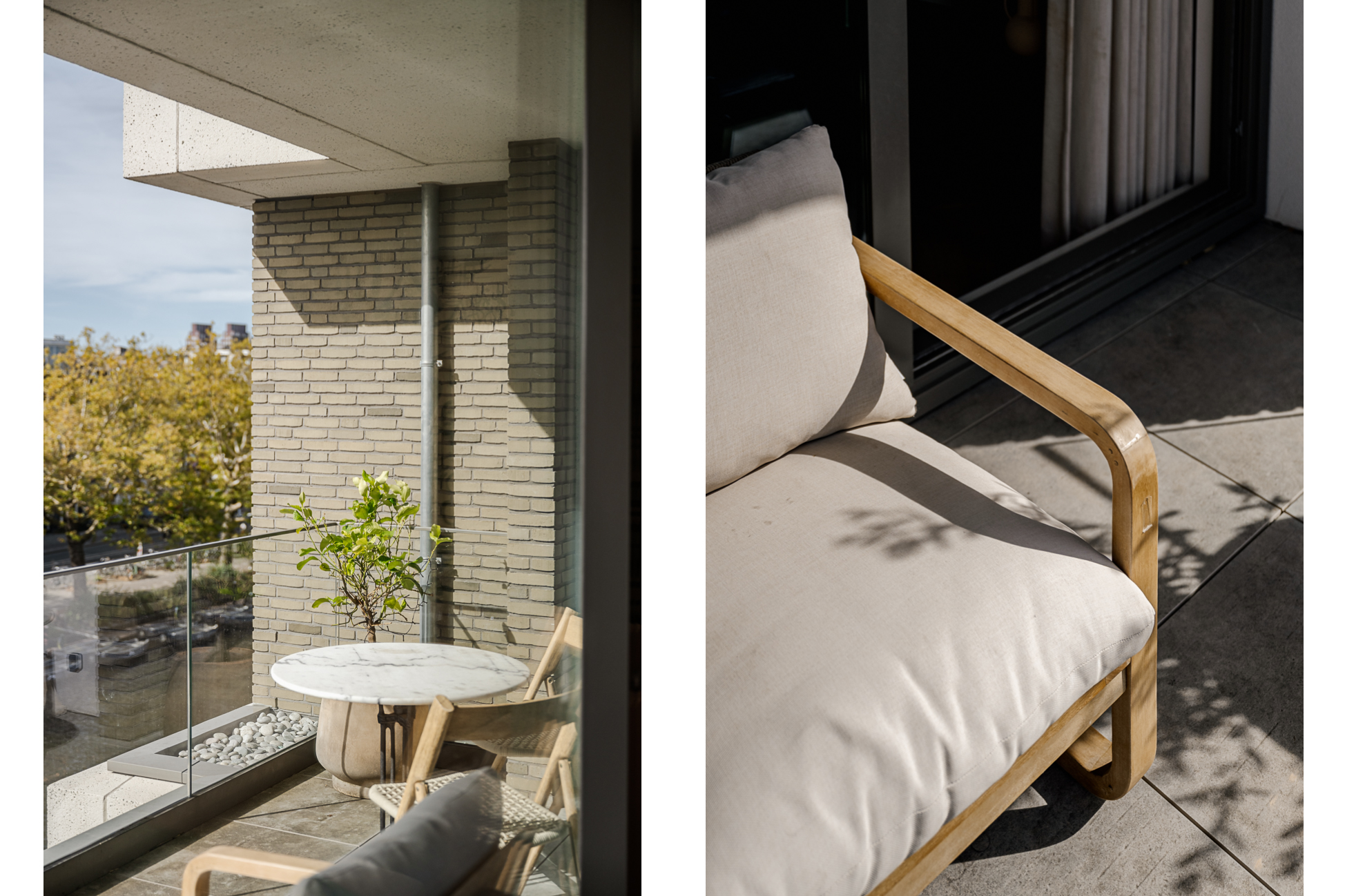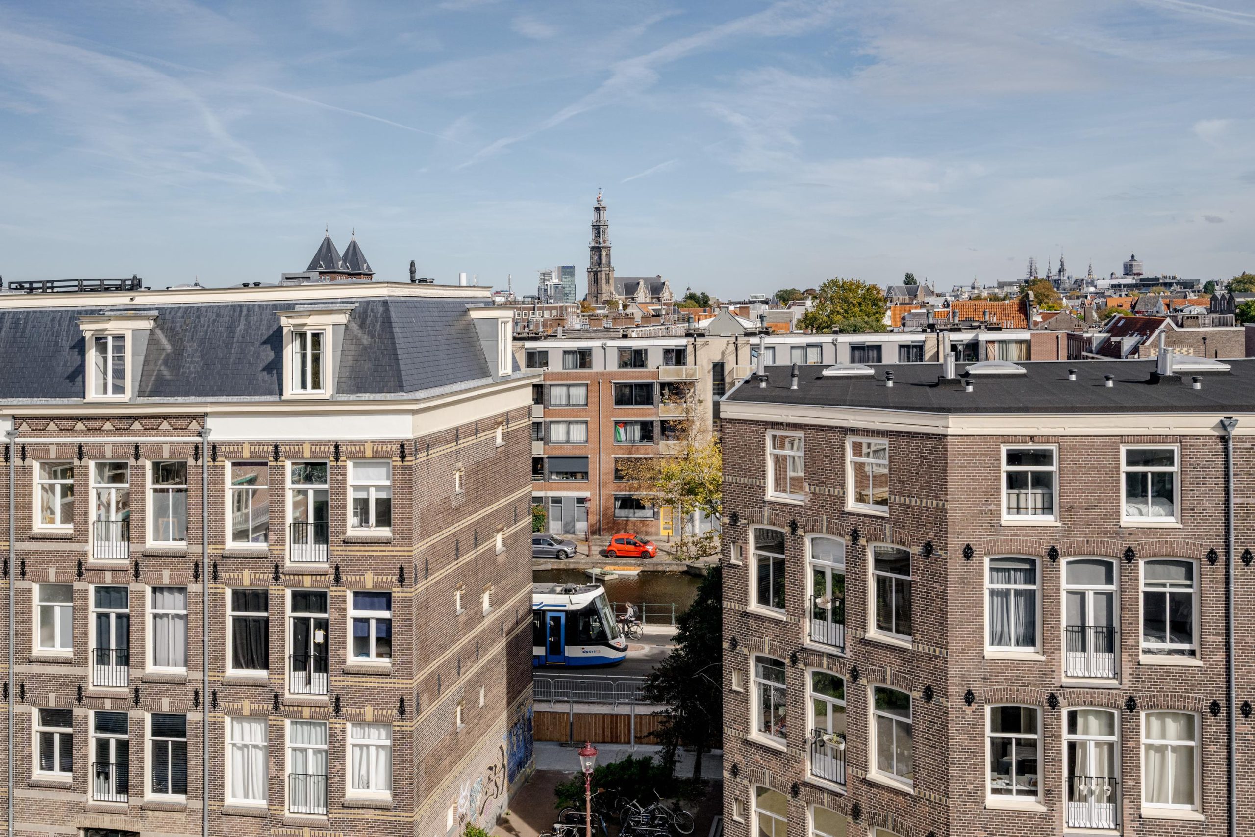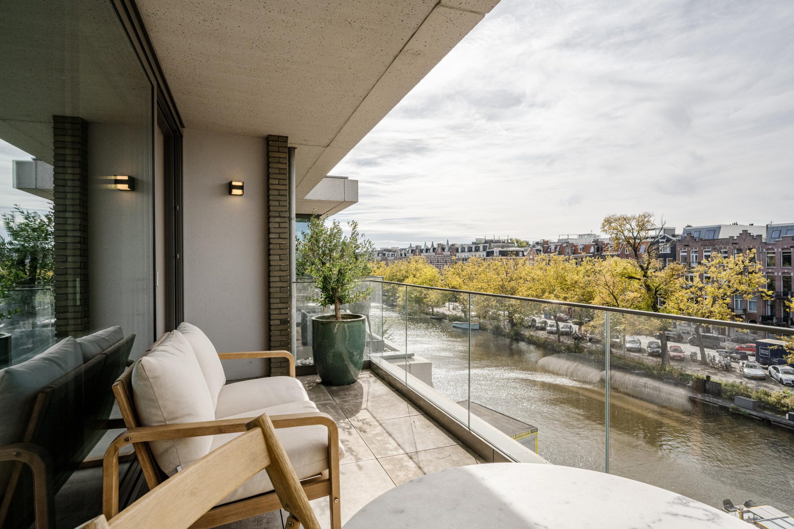 Vanuit de woonkamer stap je zo het ruime balkon op, waar je kunt genieten van de middag- en avondzon en het betoverende uitzicht over de Singelgracht en de Nassaukade. Een plek waar elke dag voelt als een klein moment van vakantie.