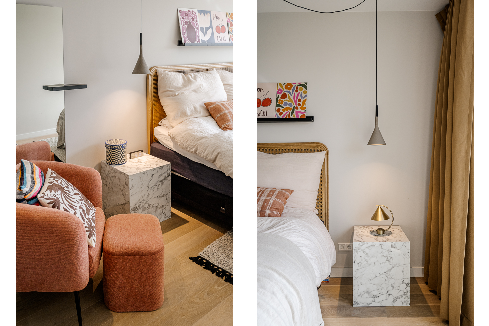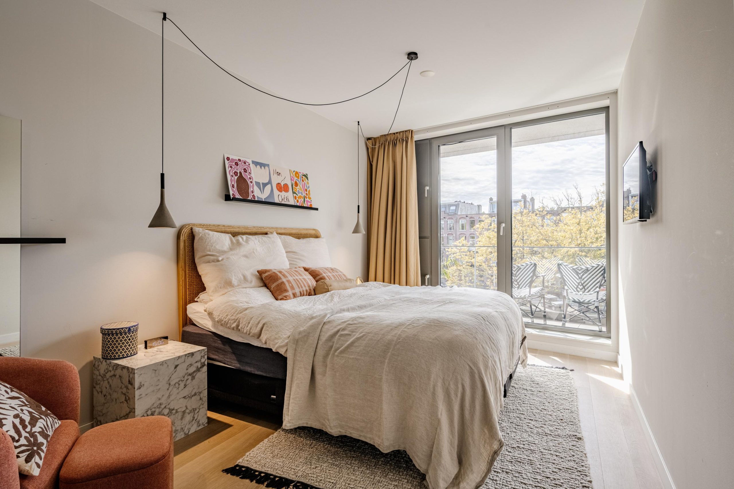 De woning beschikt over twee slaapkamers, beide met directe toegang tot het balkon, waar u kunt genieten van het prachtige uitzicht over de Singelgracht en de Nassaukade. Stel u voor: de gordijnen openen, het water glinstert in het ochtendlicht, terwijl de stad langzaam ontwaakt — een magisch begin van de dag.