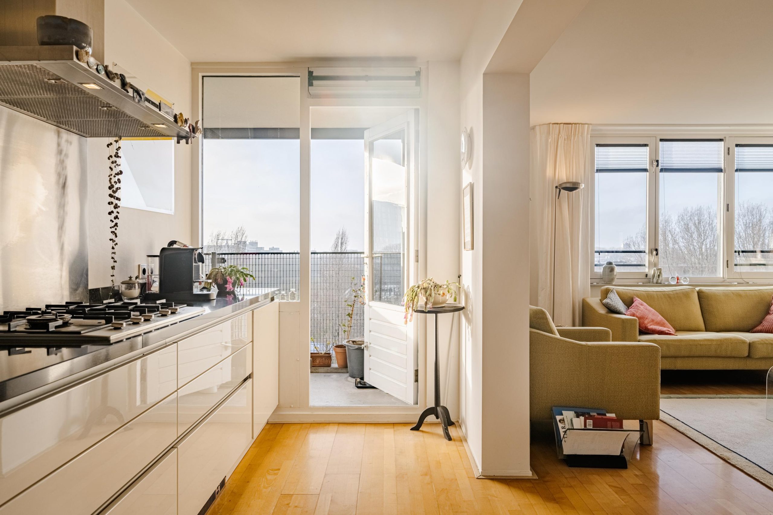 toegang tot het zonnige balkon op het zuidwesten, met vrij uitzicht en zon tot in de avond. De