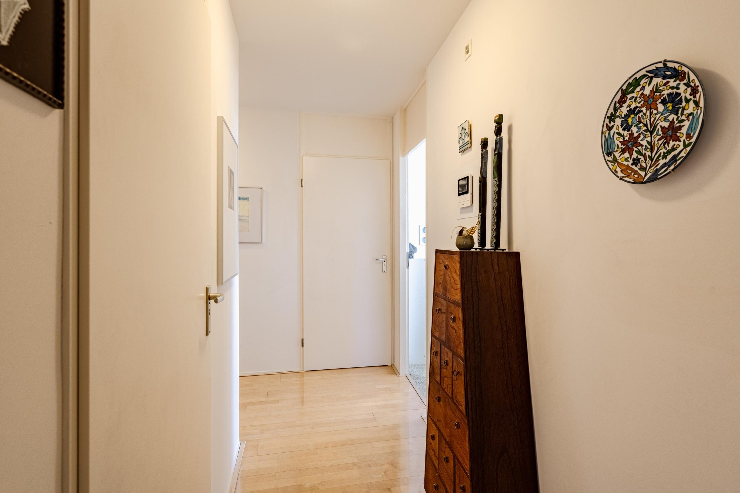 Via de eigen voordeur kom je in de hal met video-intercom. Vanuit hier is er toegang tot de