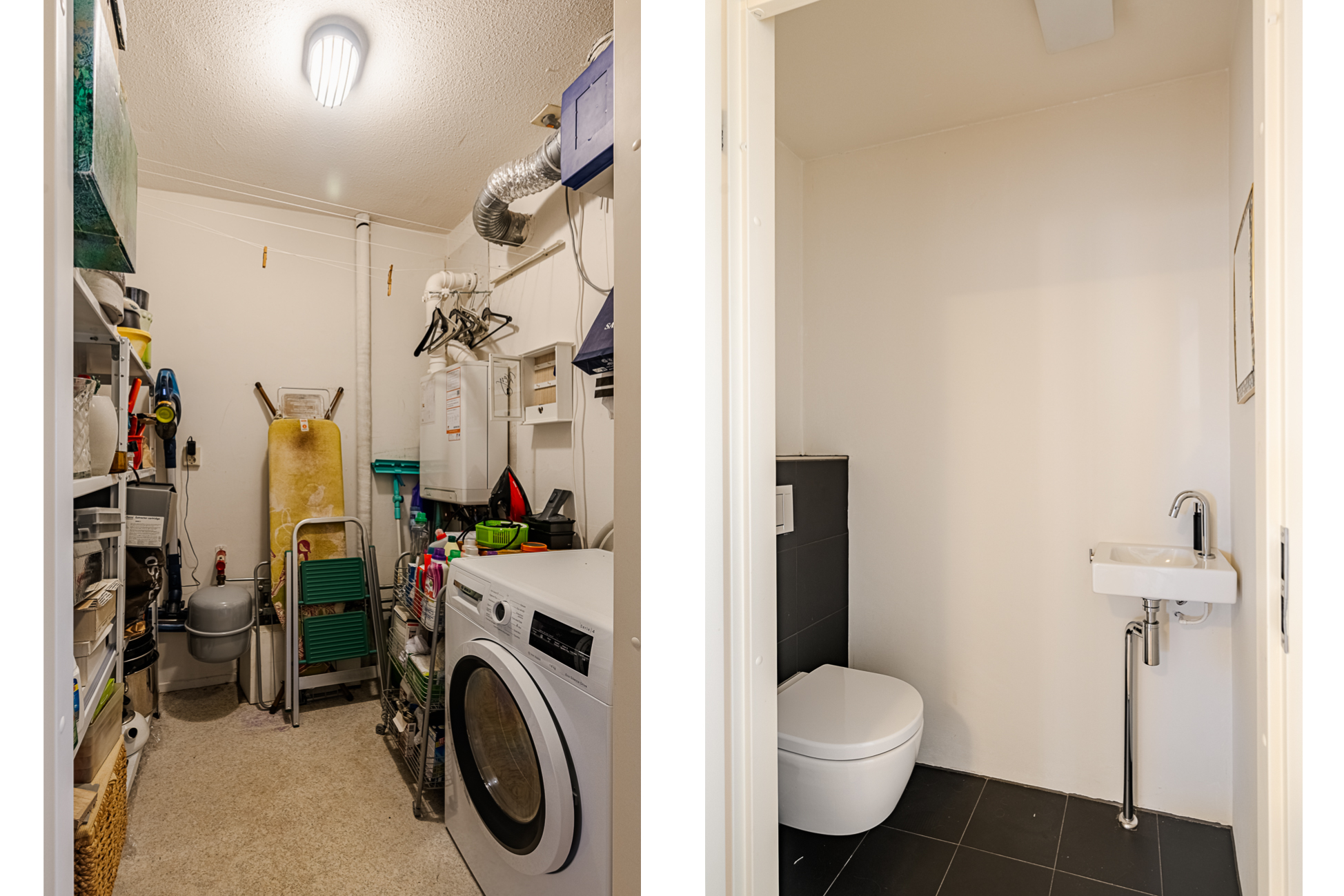 aparte was- en bergruimte, het separaat toilet, twee slaapkamers en de badkamer met