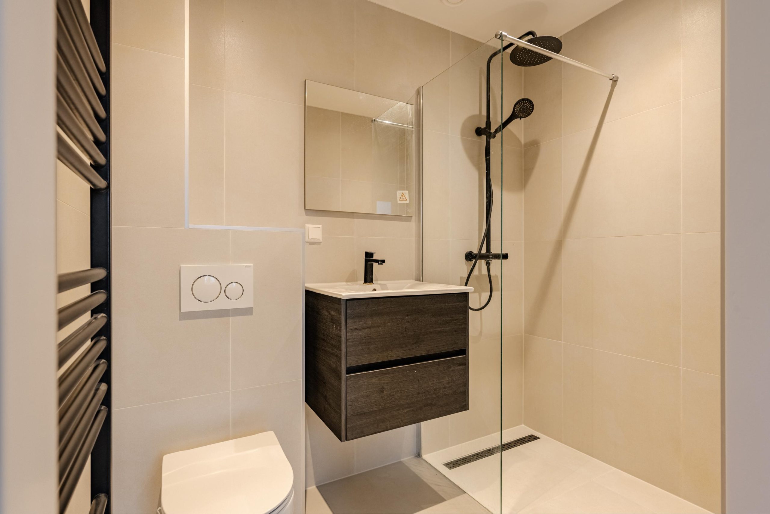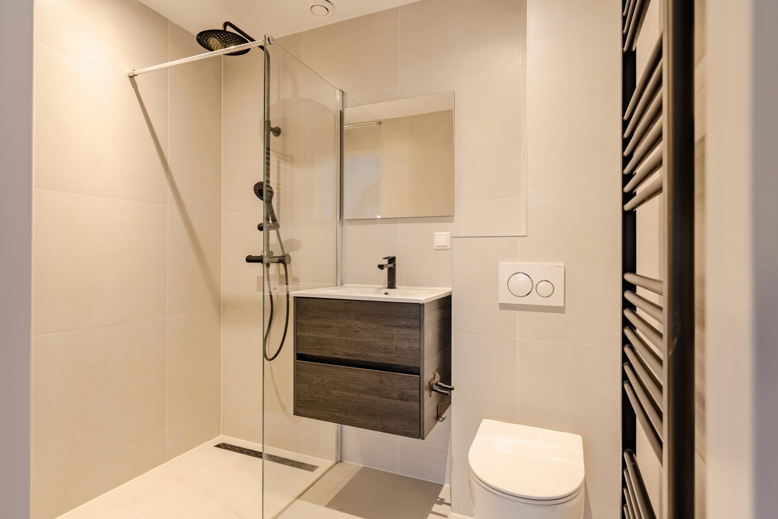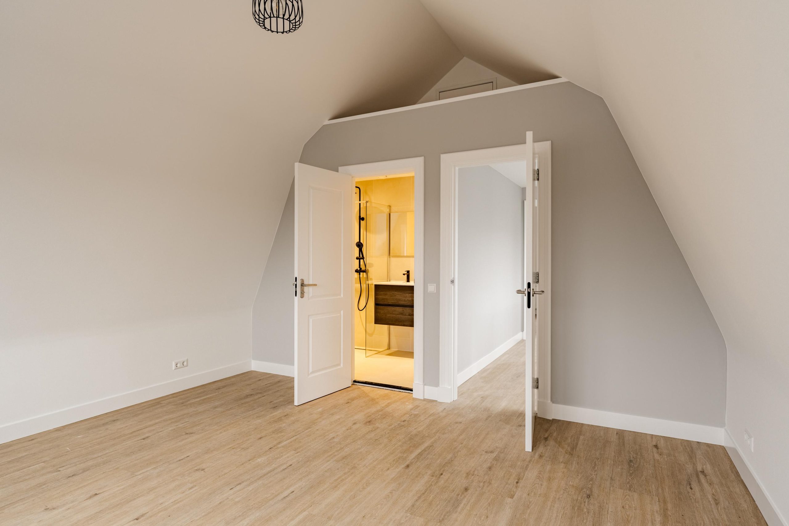 De tweede verdieping biedt nog eens twee ruime slaapkamers, elk met een luxe, eigen badkamer inclusief toilet, douche en wastafelmeubel. Beide kamers beschikken bovendien over een handige vliering met extra bergruimte.