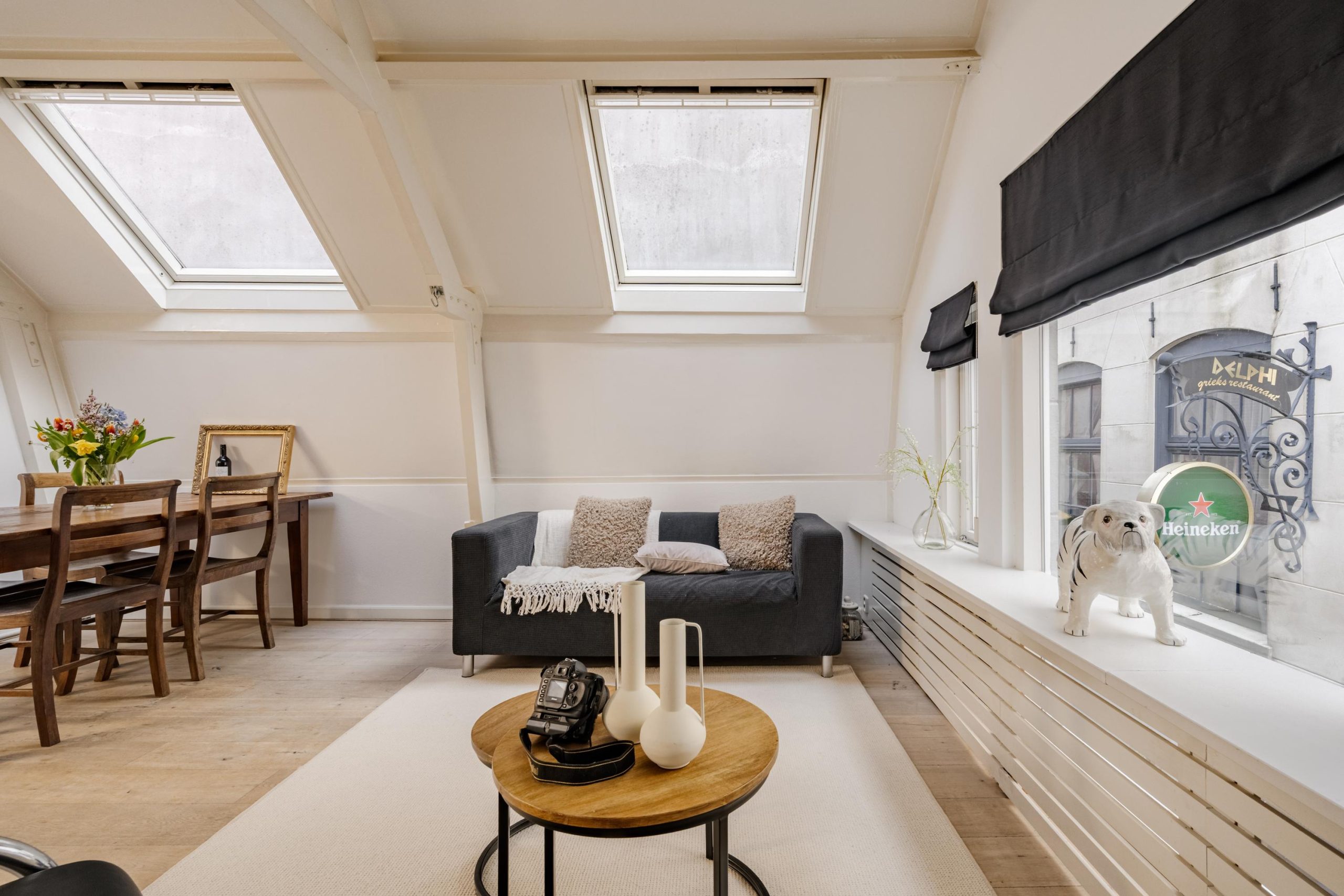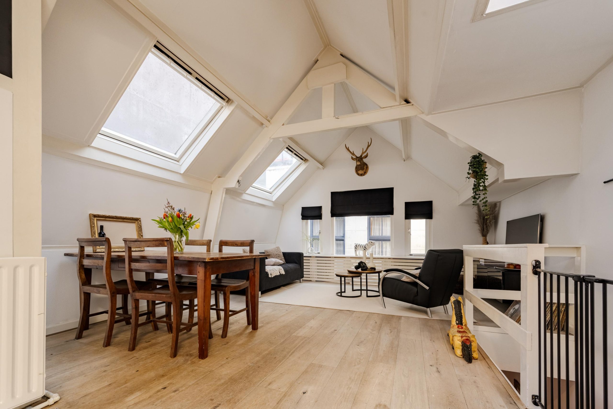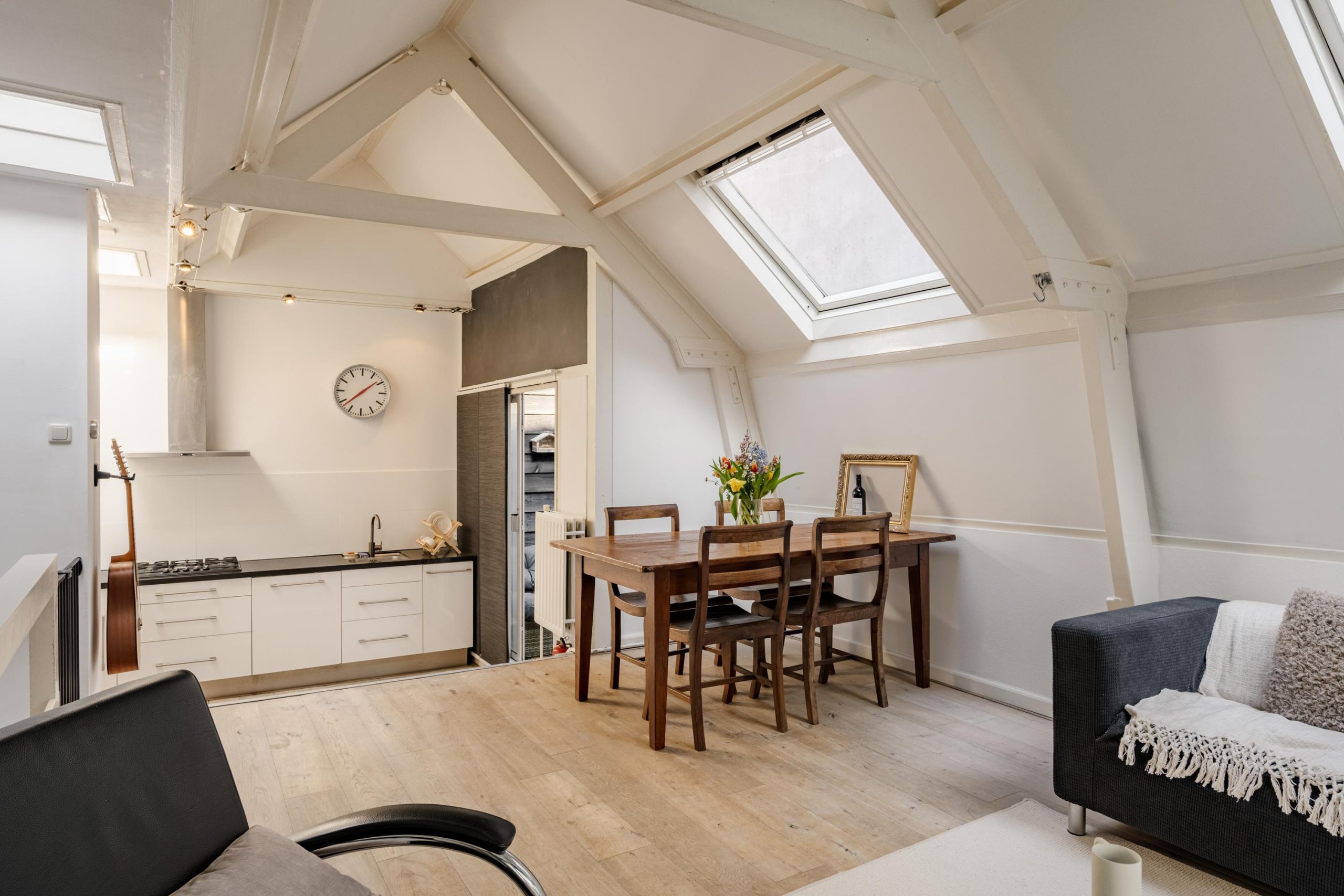 Op de eerste verdieping vind je de lichte woonkamer met een prachtige zichtbare dakspantconstructie en een keuken met toegang tot een kleine buitenplaats. De combinatie van karakter, licht en locatie maakt dit een heerlijke plek voor wie wil genieten van het bruisende stadsleven van Haarlem.