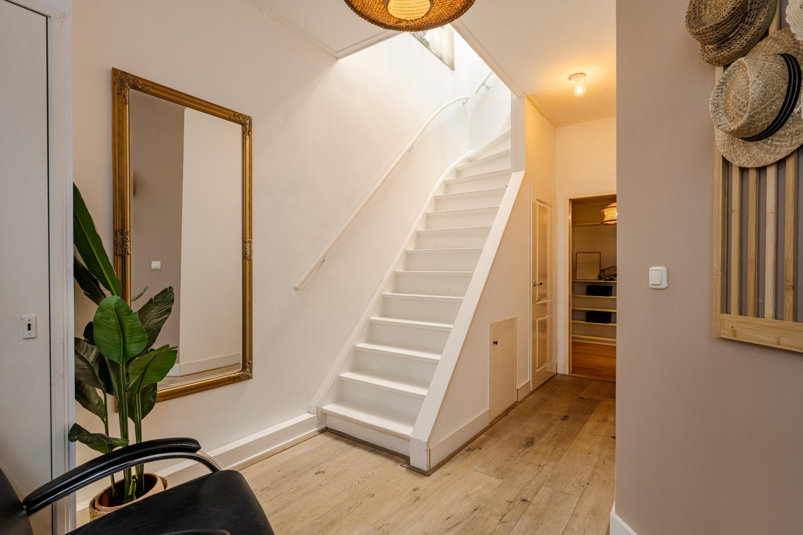 Via de hal leidt de trap naar de eerste verdieping.