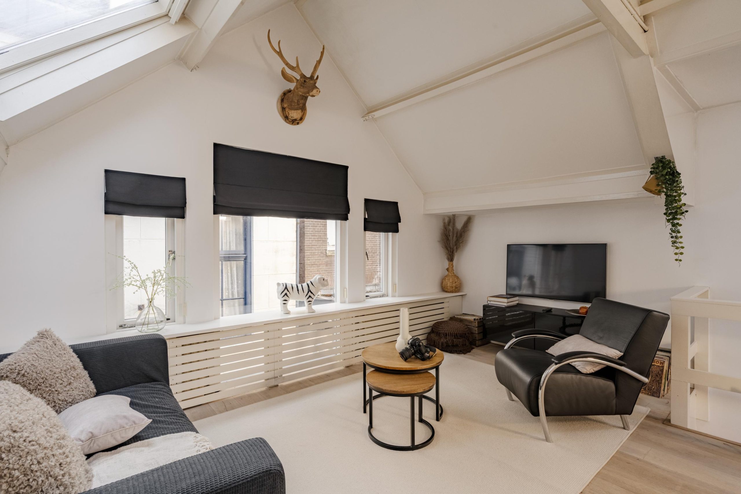 Aan de voorzijde bevindt zich de lichte woonkamer met grote ramen waardoor er een mooie natuurlijke lichtinval ontstaat. Dit maakt het een heerlijke plek om te ontspannen of gasten te ontvangen.