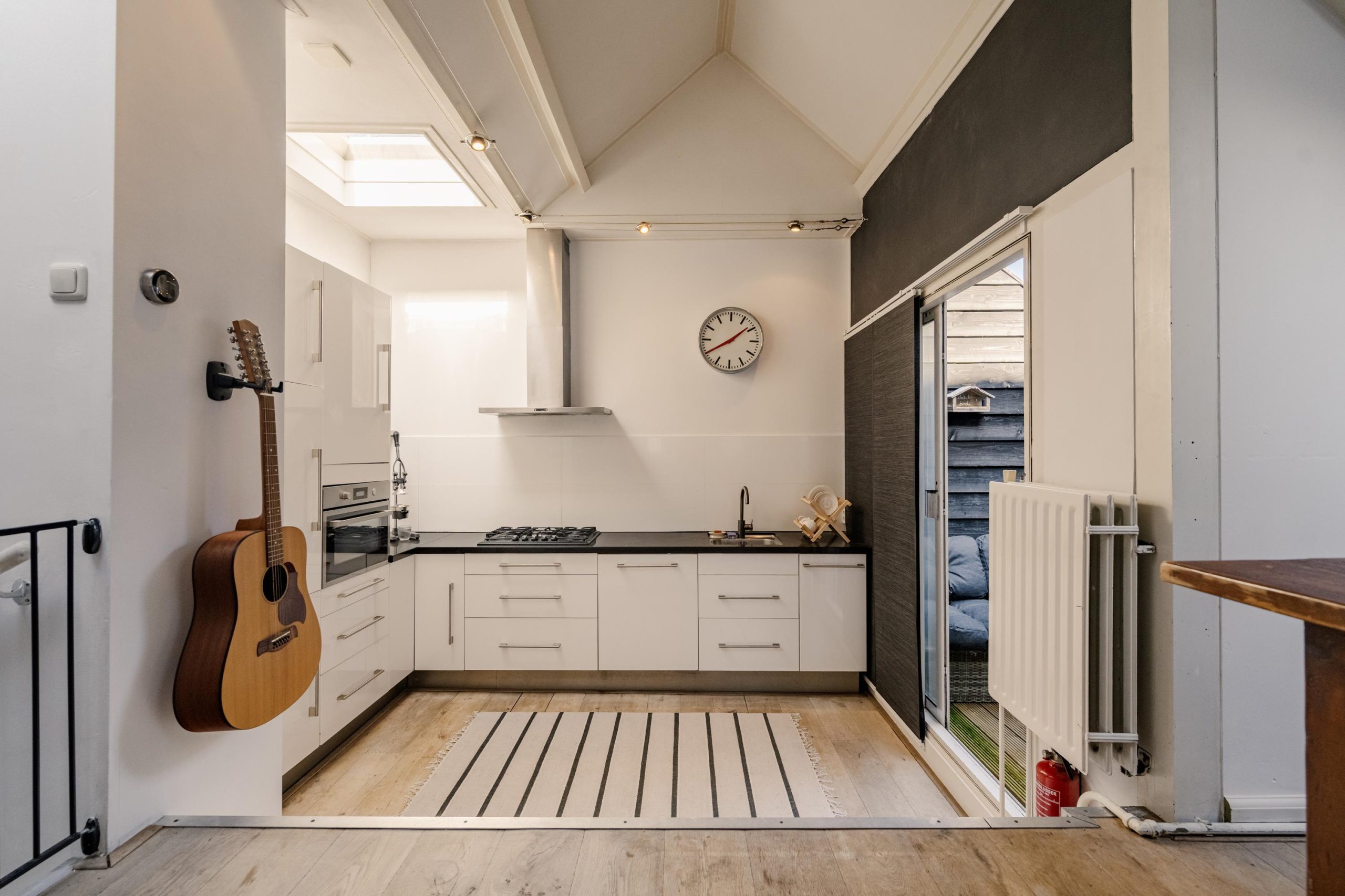 Aan de achterzijde ligt de keuken, voorzien van diverse inbouwapparatuur en voldoende kastruimte. Vanuit de keuken heb je toegang tot een kleine buitenplaats waar je even buiten kunt zitten.