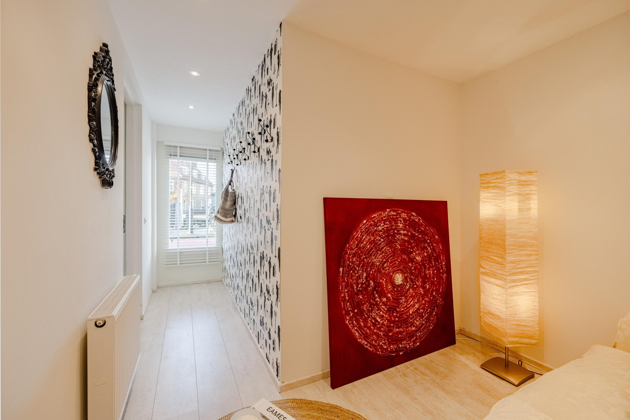 Entree via de hal met meterkast. Aan de voorzijde bevindt zich een slaapkamer. Aan de