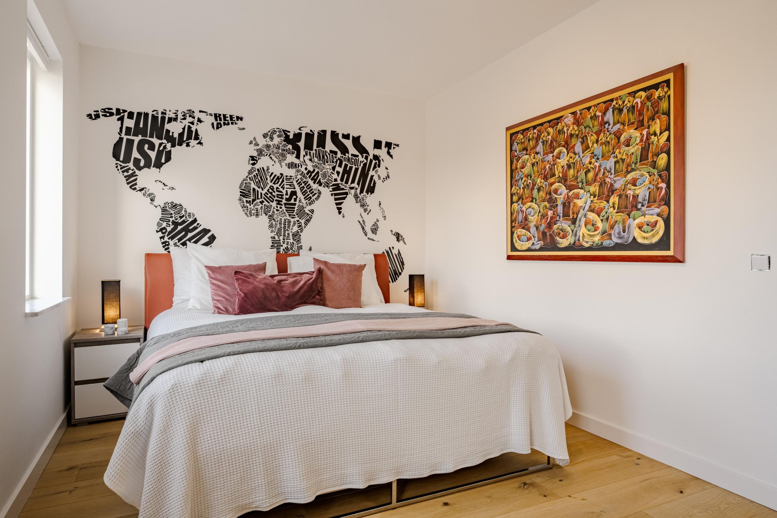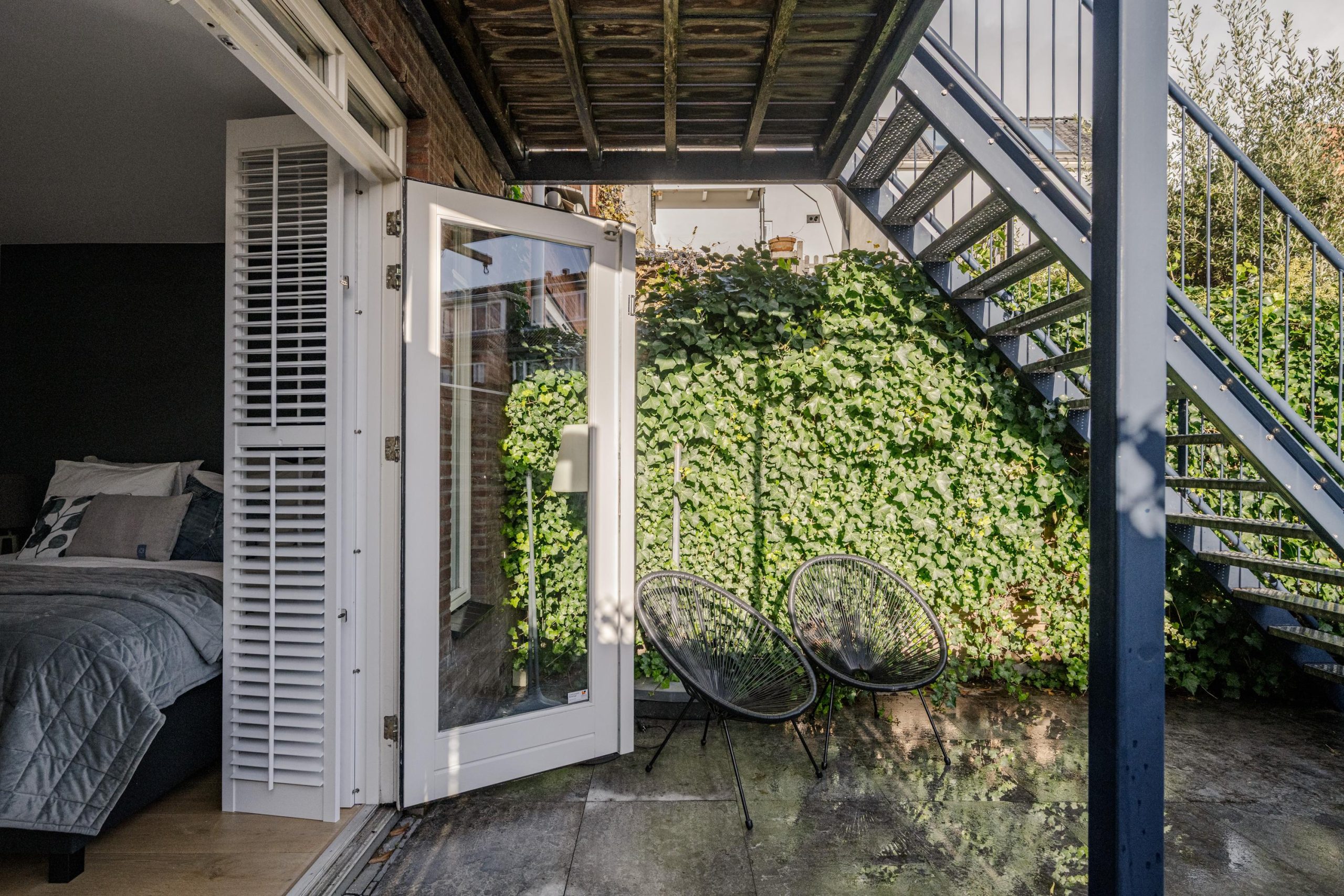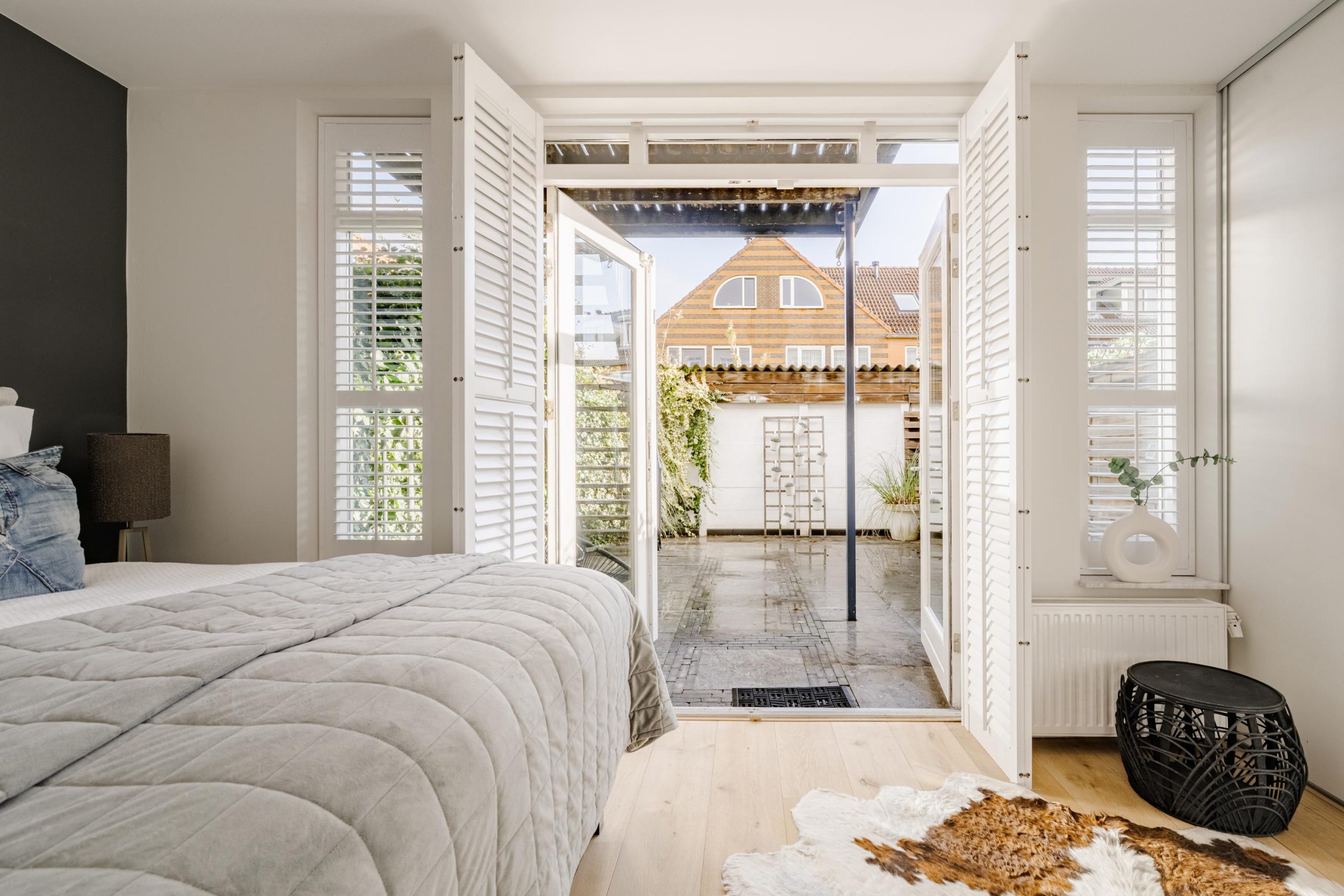 achterzijde ligt een tweede slaapkamer met praktische vaste kastenwand en openslaande