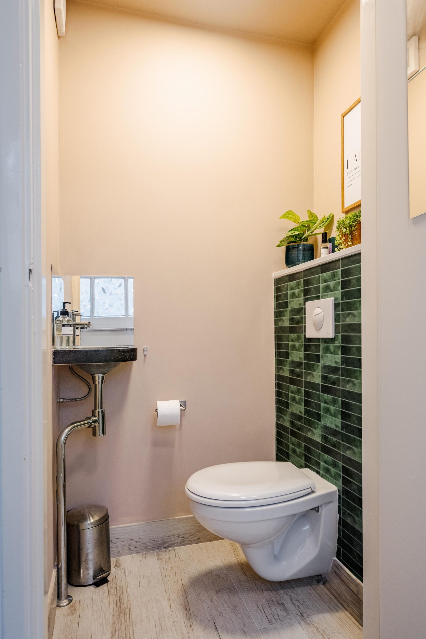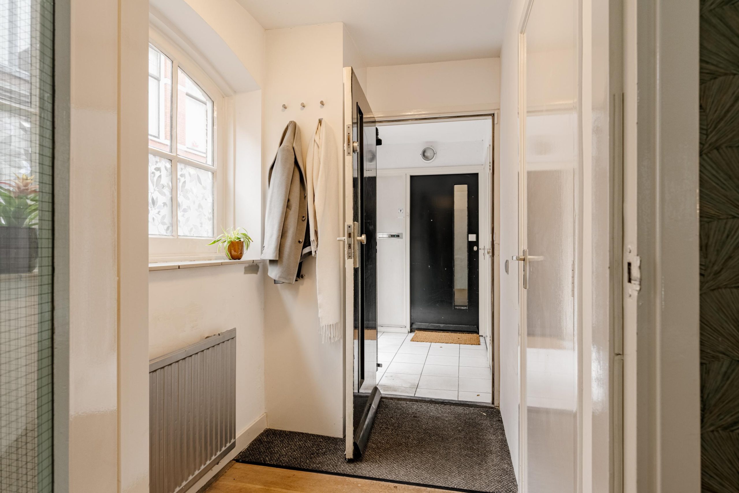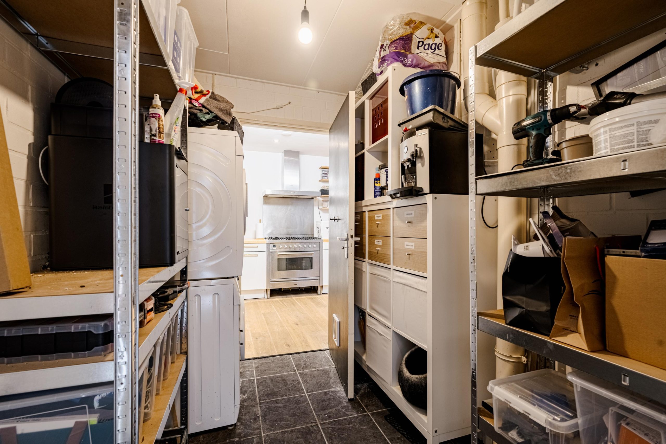 Via het charmante hek betreed je de woning. In de ruime hal bevindt zich de meterkast en het moderne toilet met fonteintje. De living is verrassend licht, met een warme houten vloer en een open keuken aan de achterzijde. De keuken is uitgerust met hoogwaardige inbouwapparatuur van onder andere Boretti en Siemens – een heerlijke plek voor kookliefhebbers. Aansluitend vind je de praktische inpandige bijkeuken met ruimte voor wasmachine, berging en extra opslag.