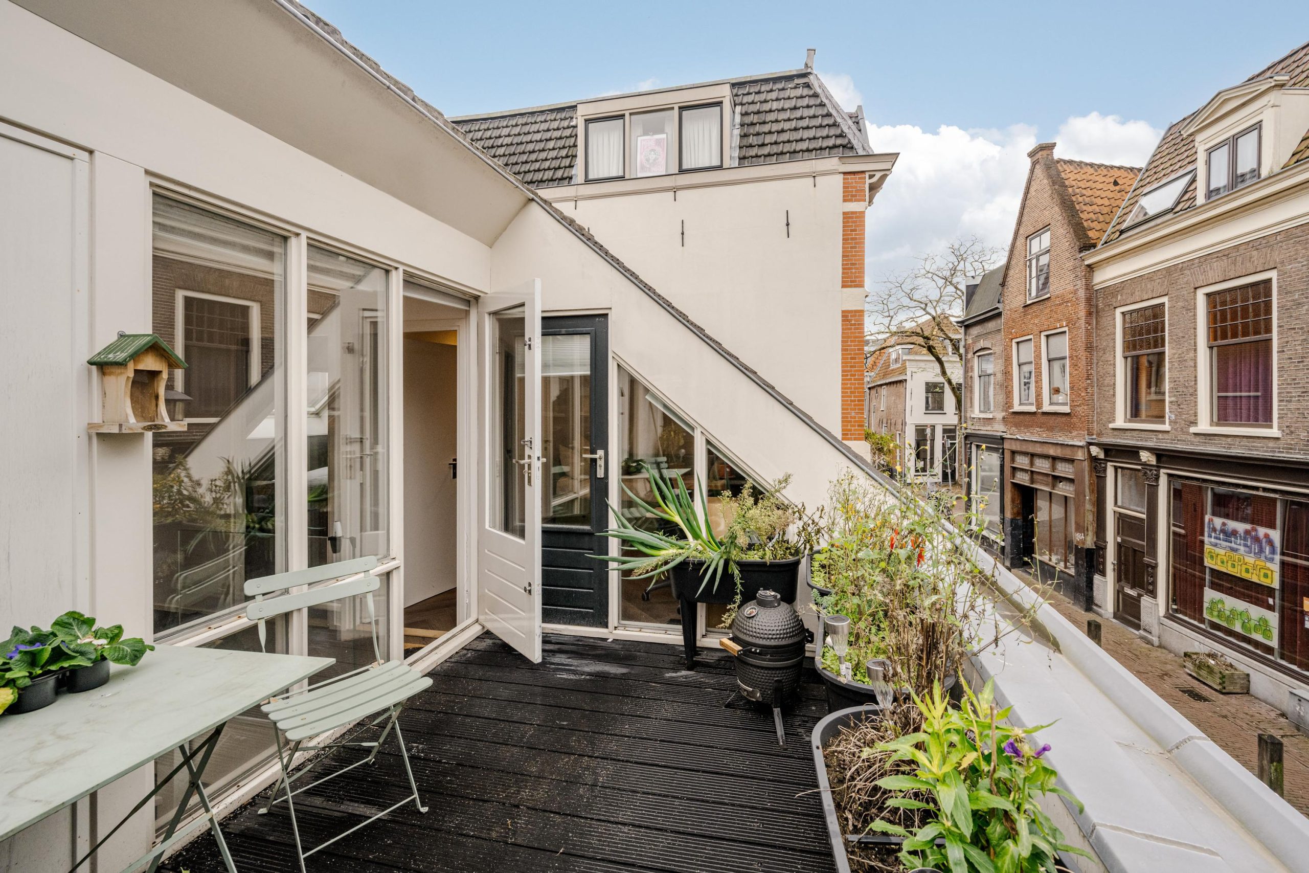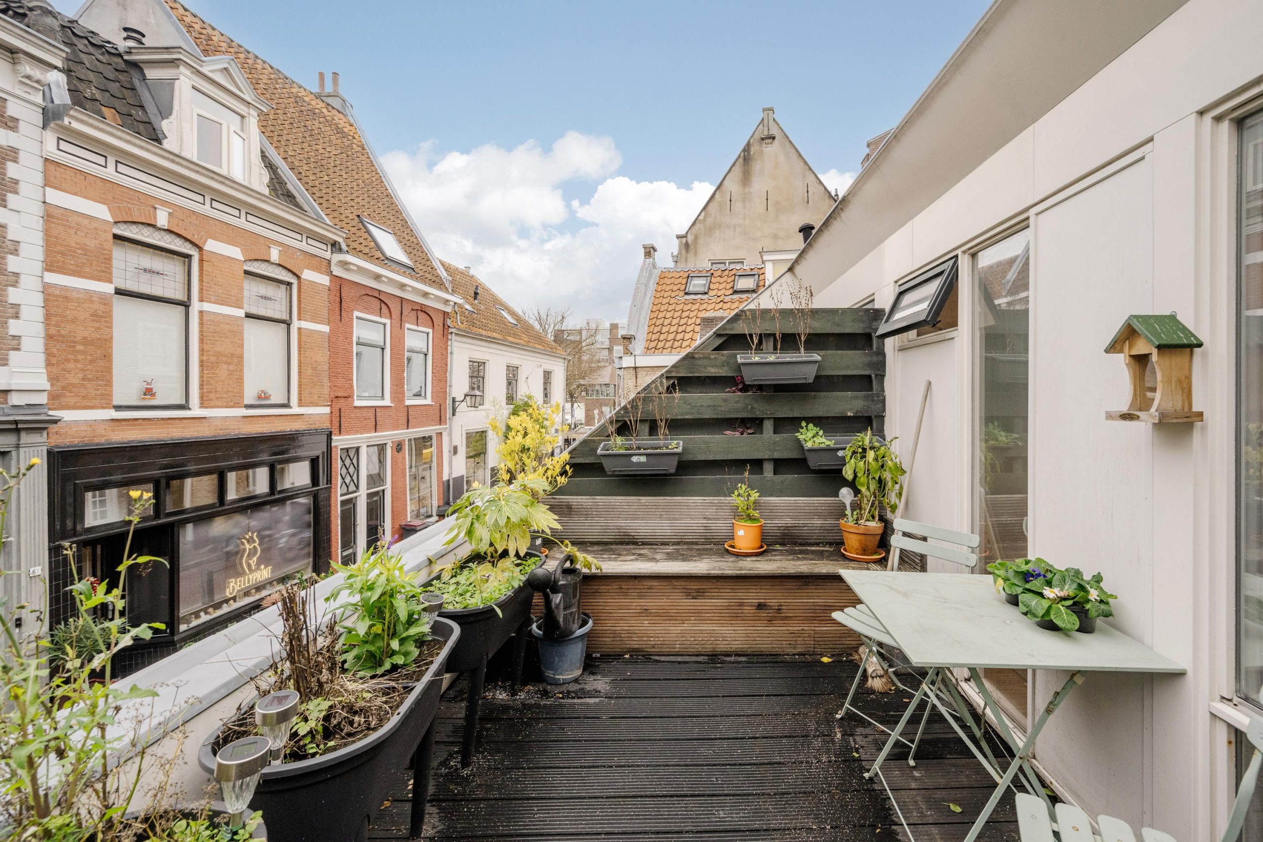 Vanuit de overloop is het ruime dakterras bereikbaar, gelegen op het zonnige zuiden. Hier kijk je uit over de karakteristieke Melkbrug en het Spaarne – een heerlijke plek voor een kop koffie in de ochtendzon of een goed glas wijn aan het eind van de dag.
