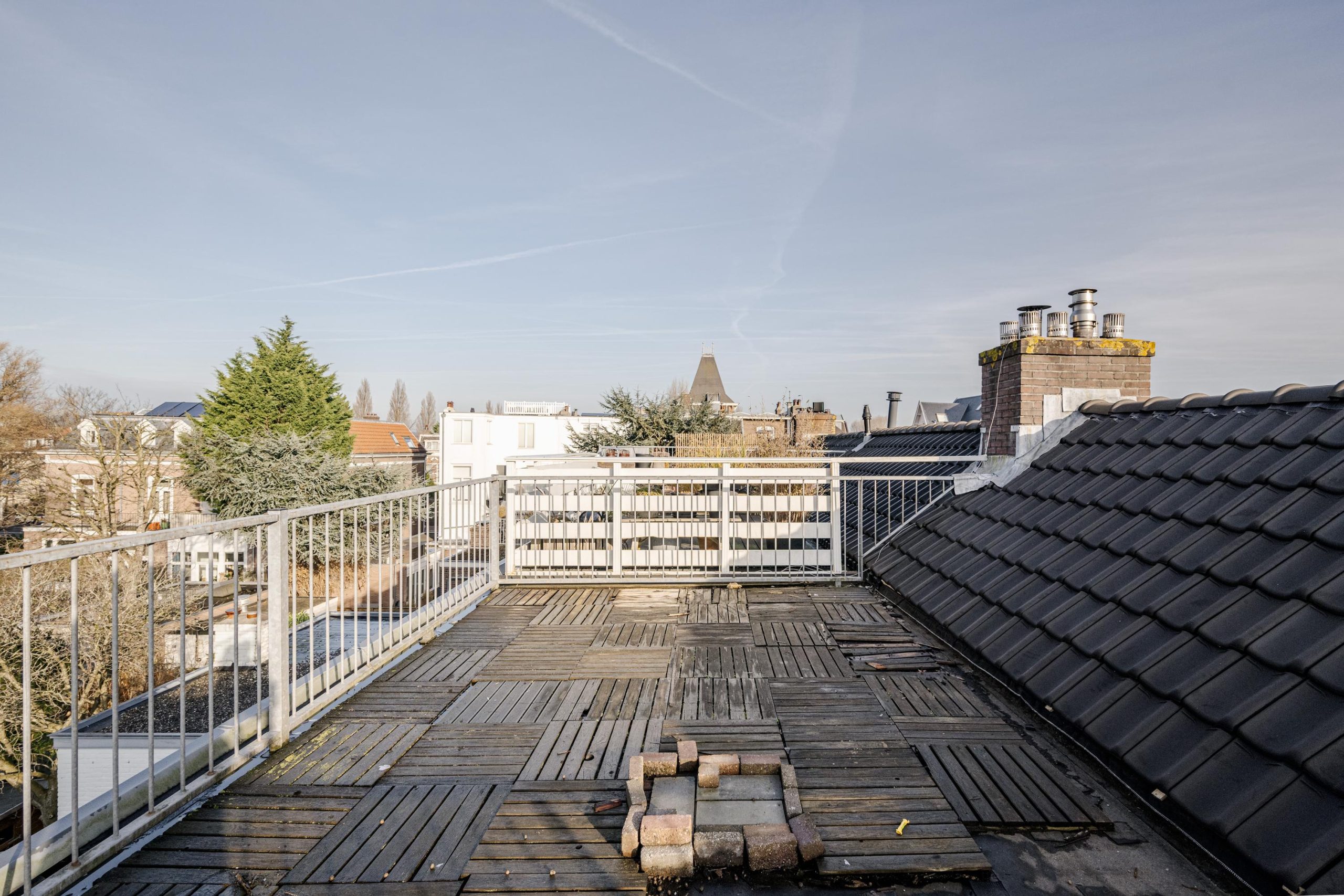 De woning heeft fraaie originele details, een prettige lichtinval en biedt volop mogelijkheden om naar eigen smaak te moderniseren. Het absolute hoogtepunt is het ruime dakterras bovenop het dak, waar je geniet van zon, rust en een vrij uitzicht – midden in de stad.