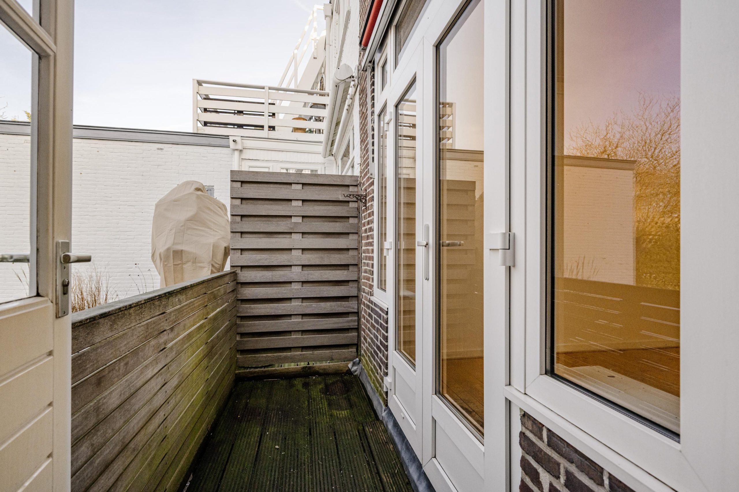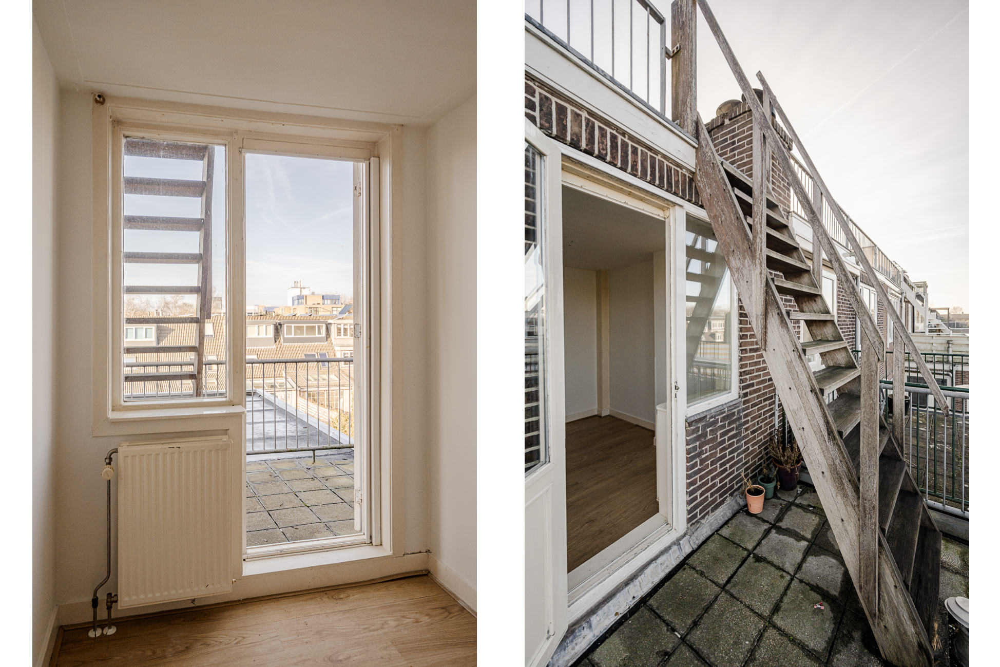 Een zeldzame combinatie in Haarlem: twee dakterrassen én een extra dakopgang met panoramisch uitzicht. Het eerste terras ligt op de eerste verdieping en is ideaal voor de ochtendzon. Het tweede terras grenst aan een slaapkamer op de tweede verdieping. Via een vaste trap bereik je het ruime boventerras, een unieke plek voor een loungehoek, diner met vrienden of ontspannen genieten van de skyline van Haarlem.