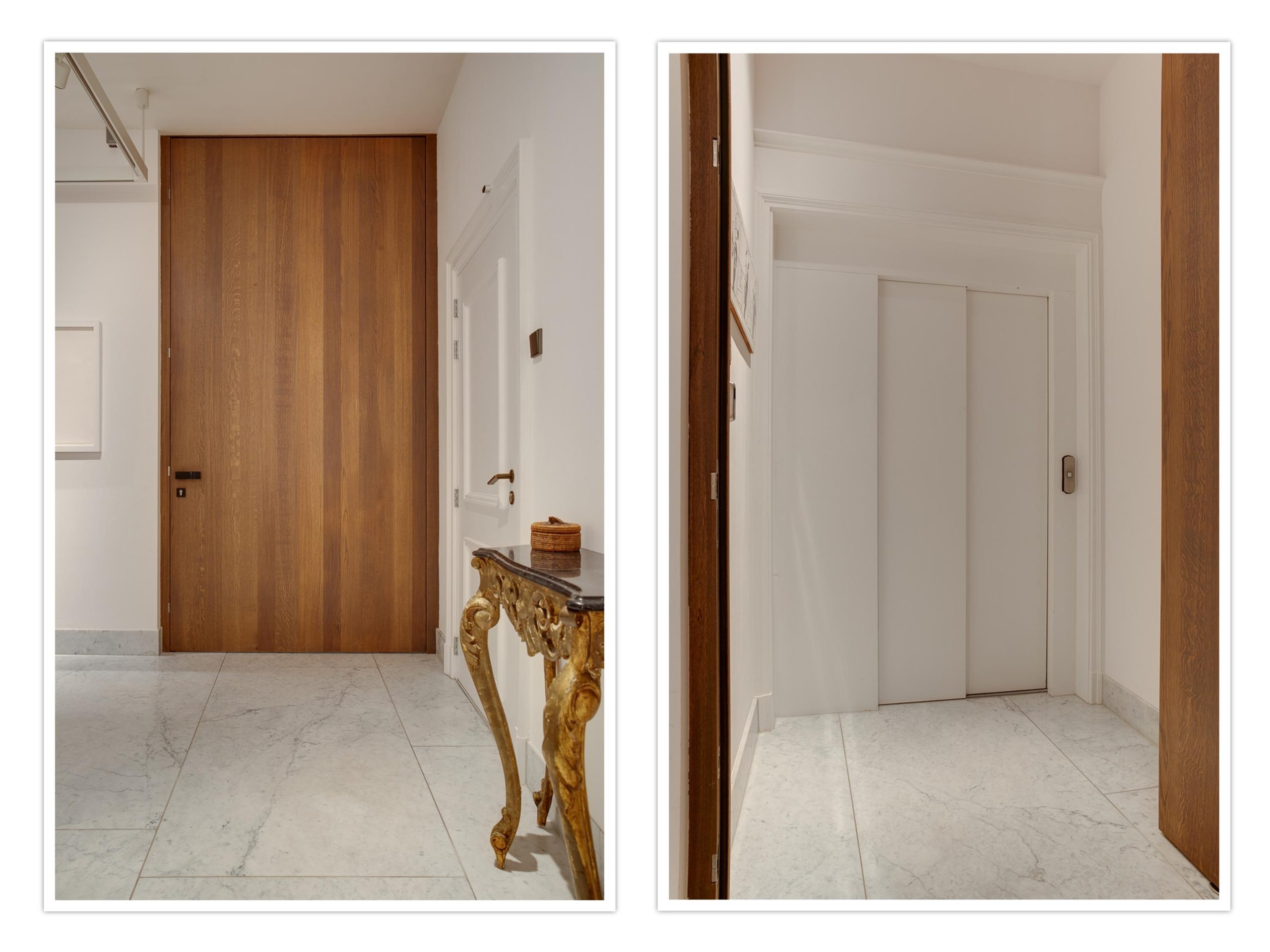 Entree via de zijpoort, gemeenschappelijke hal en lift en trappenhuis naar de eerste verdieping.