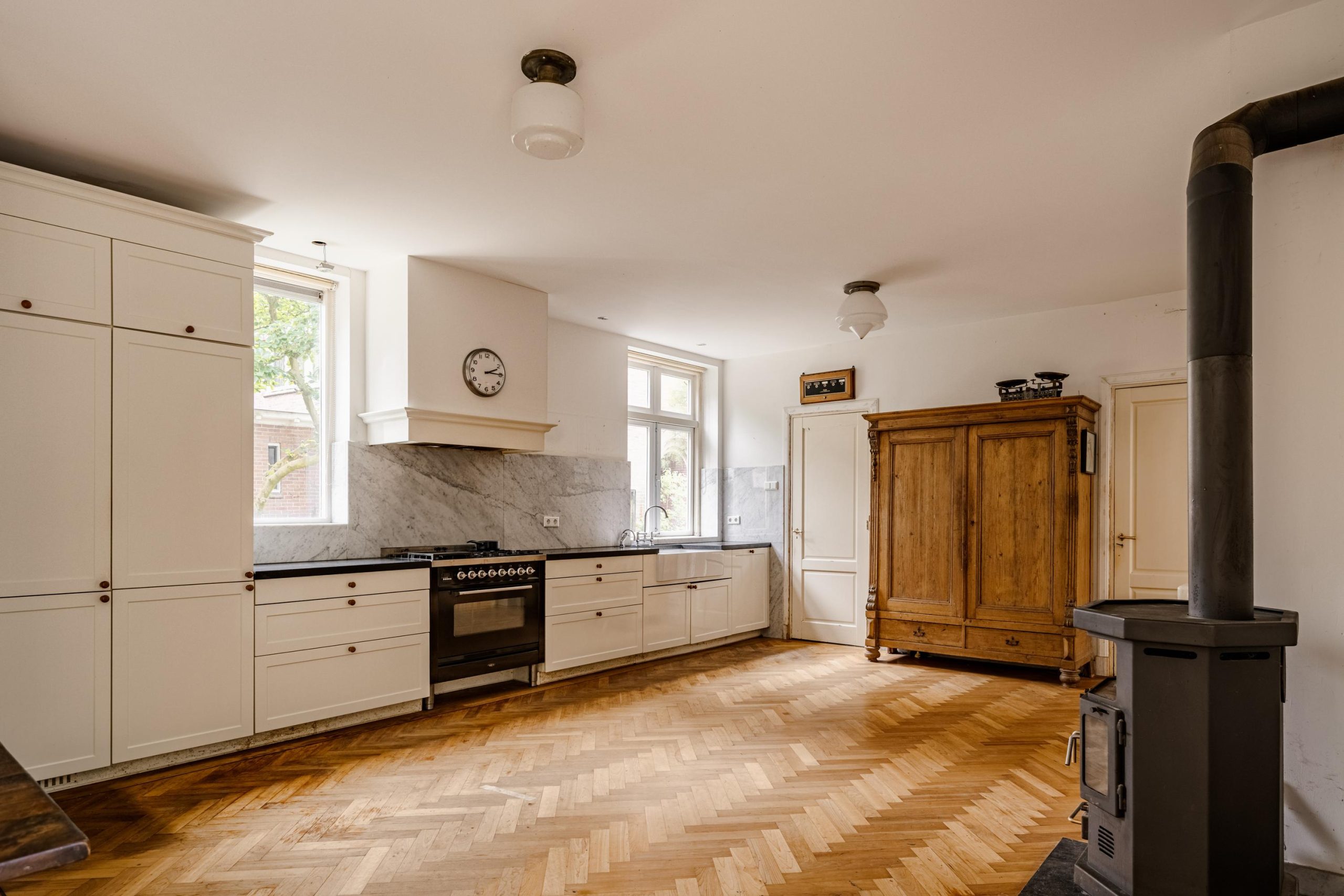 De uitgebouwde woonkeuken is een droom voor kookliefhebbers: ruim opgezet, voorzien van een sfeervolle houtkachel en meerdere openslaande deuren naar de tuin. Vanuit de keuken is er toegang tot de bijkeuken met CV-ruimte én de inpandige berging, perfect als klusruimte of extra opslag.