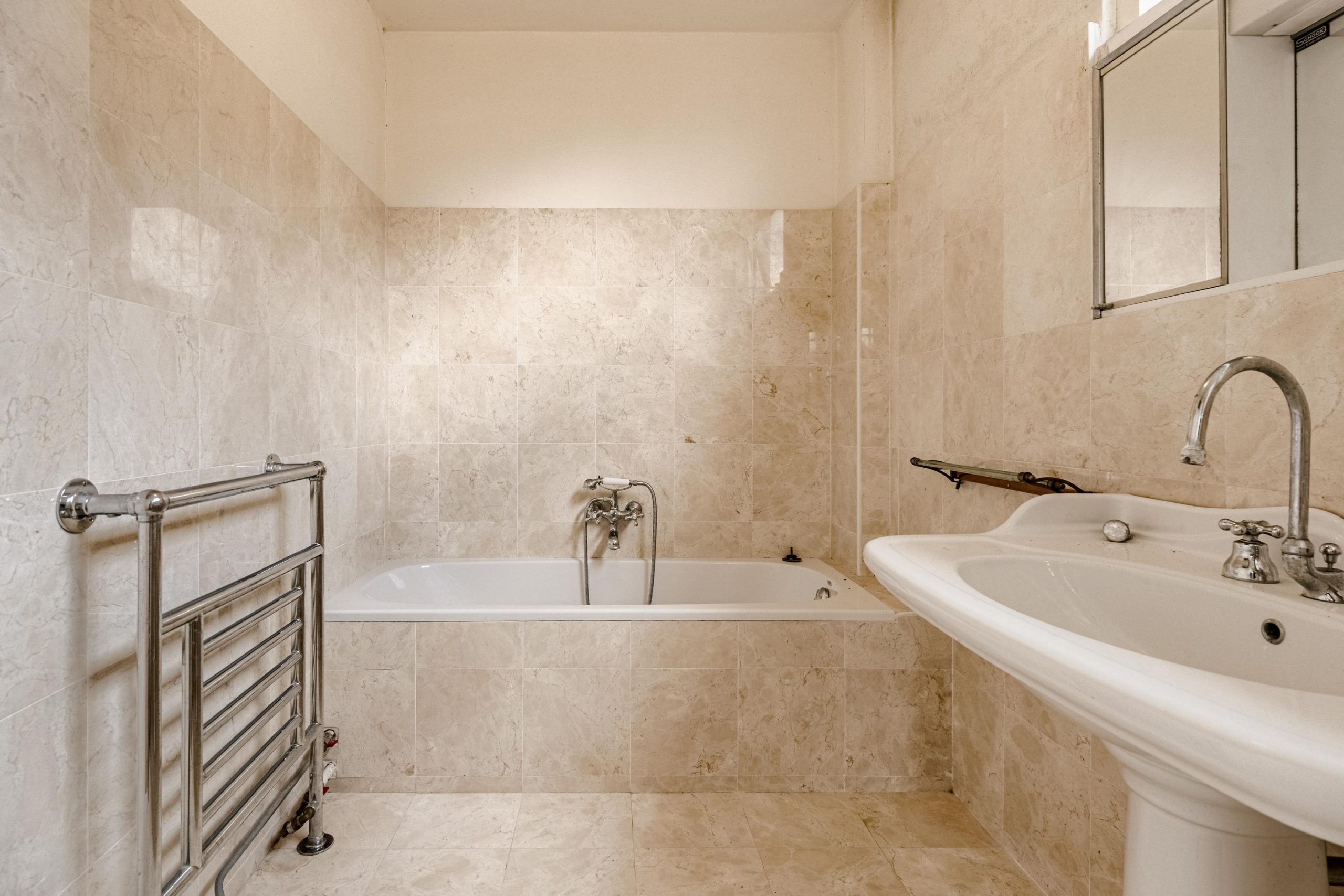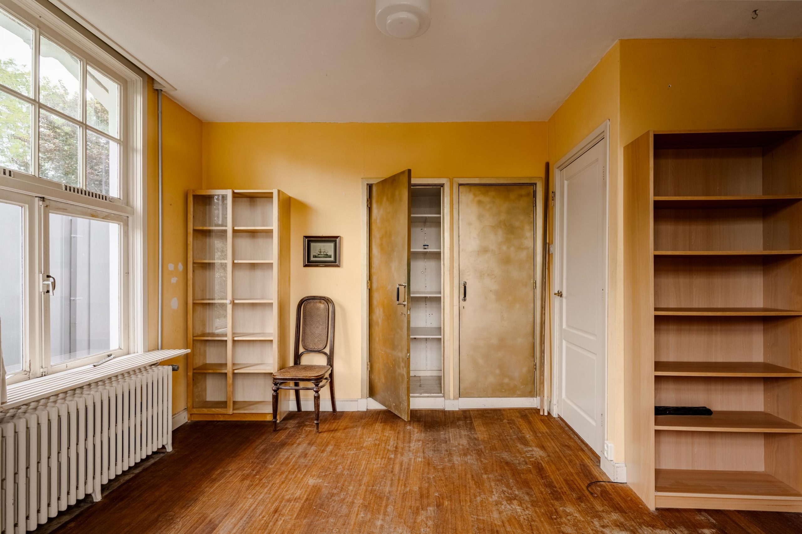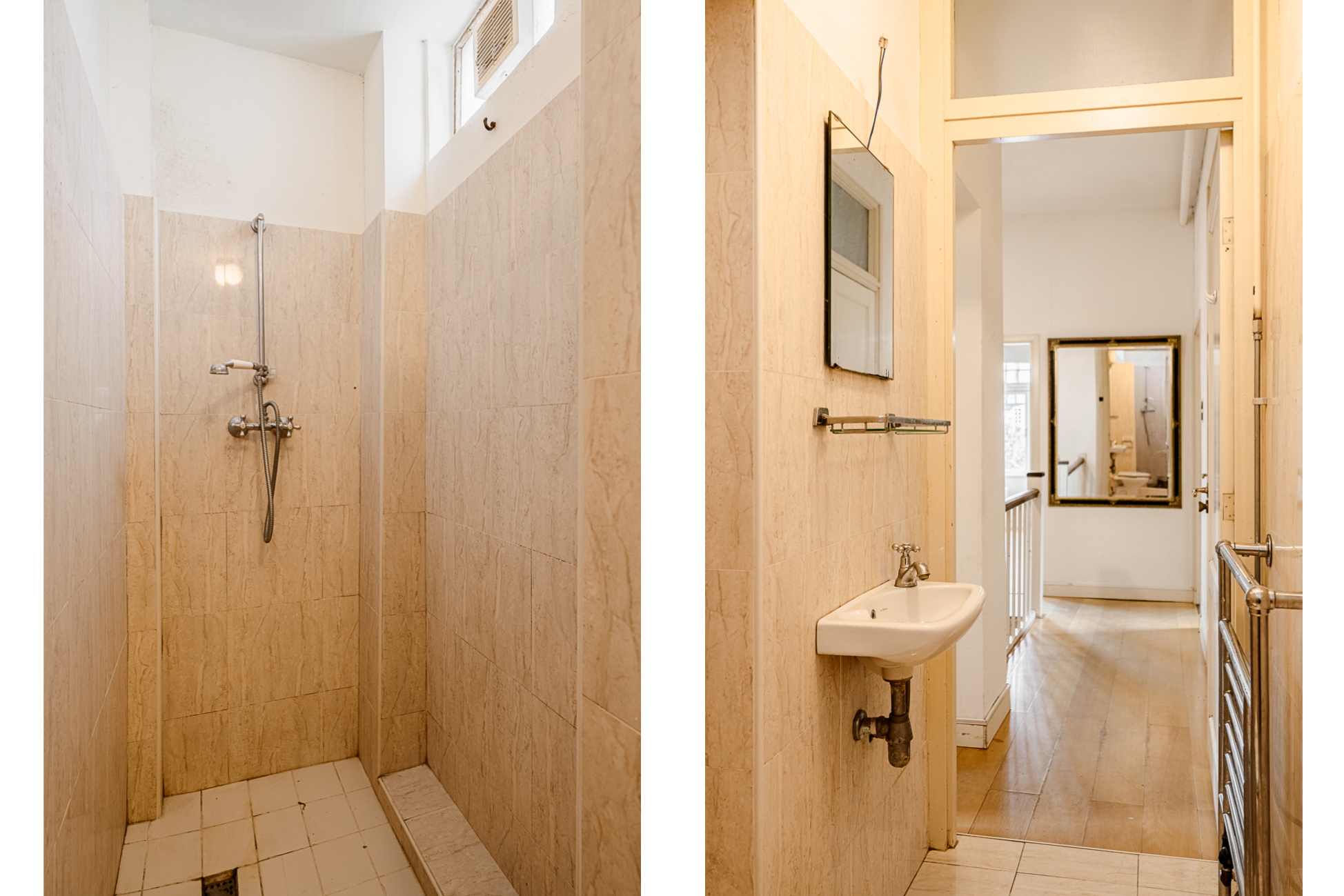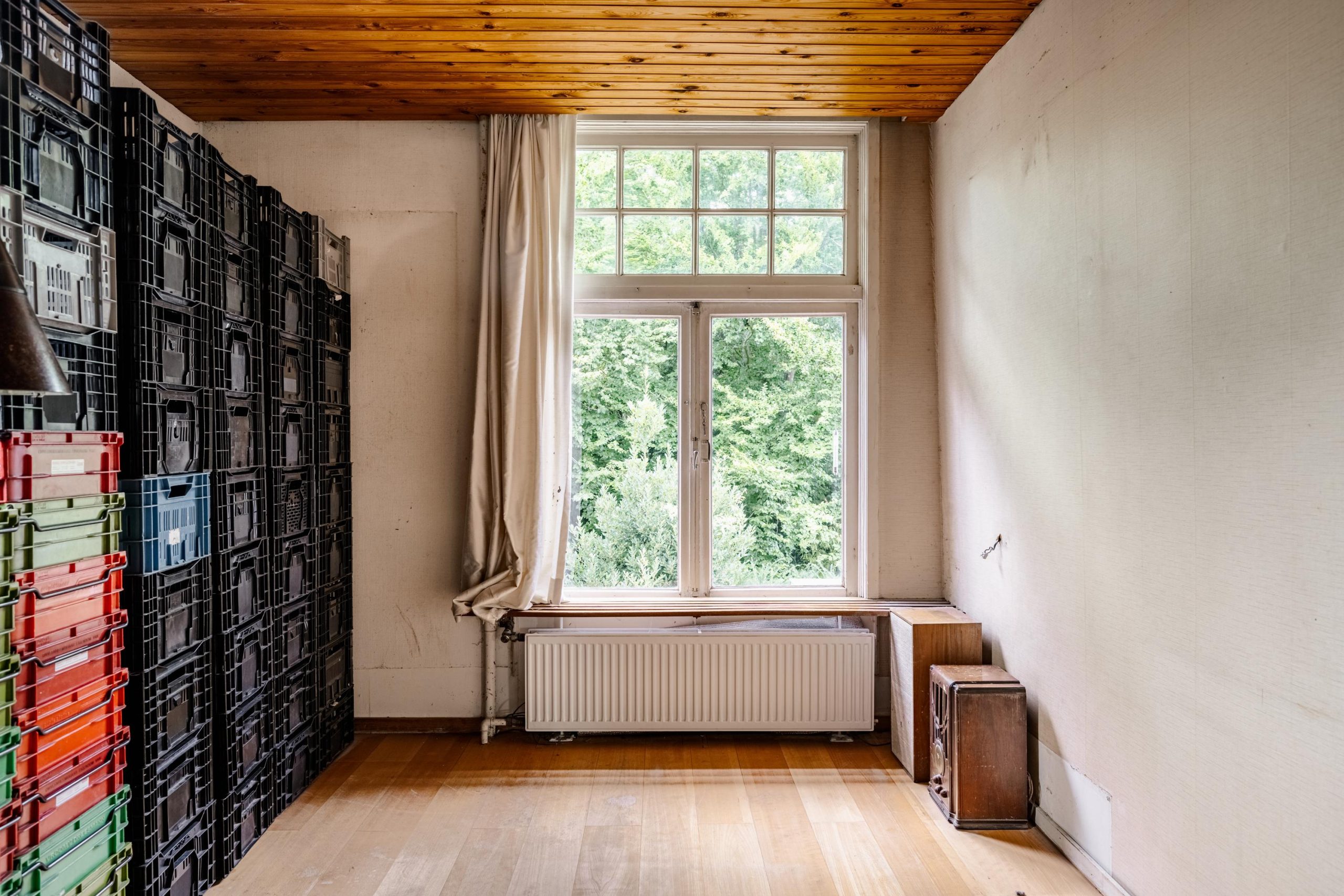 Op de zolderverdieping vinden we opnieuw een ruime overloop met veel inbouwkasten. Aan de voorzijde een sfeervolle slaapkamer met authentieke geiserinstallatie. Aan de achterzijde nog twee volwaardige slaapkamers, beide met karakteristieke daklijnen en veel kastruimte. Daarnaast is er nog voldoende ruimte om eventueel een derde badkamer te realiseren.