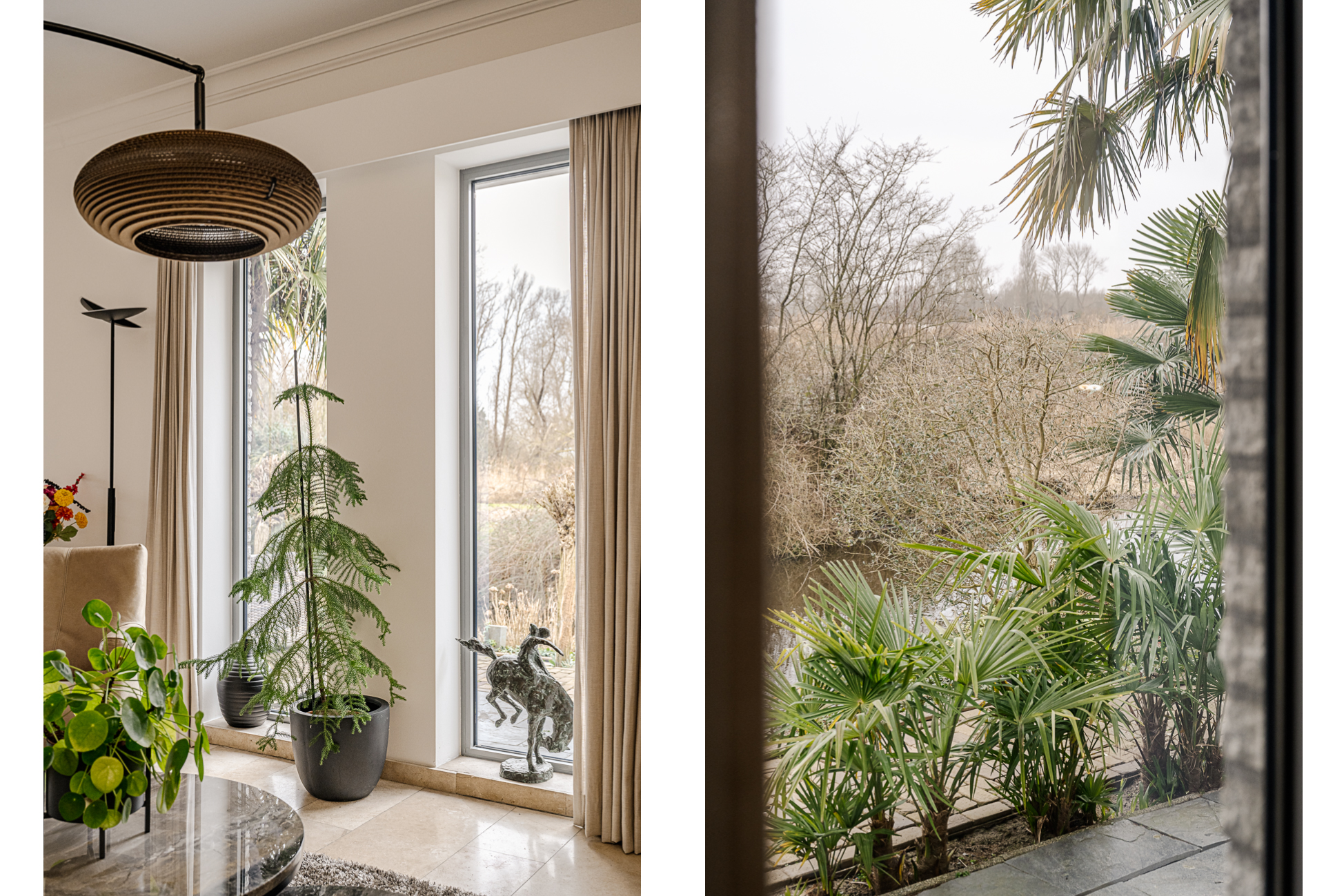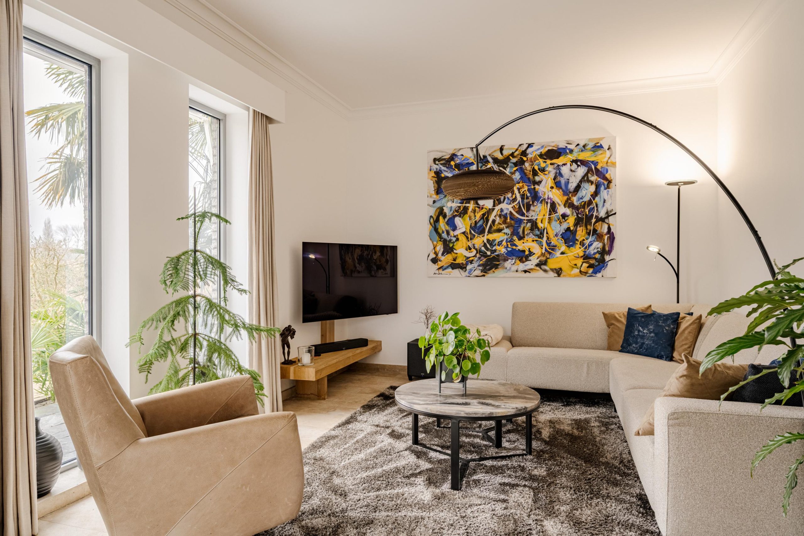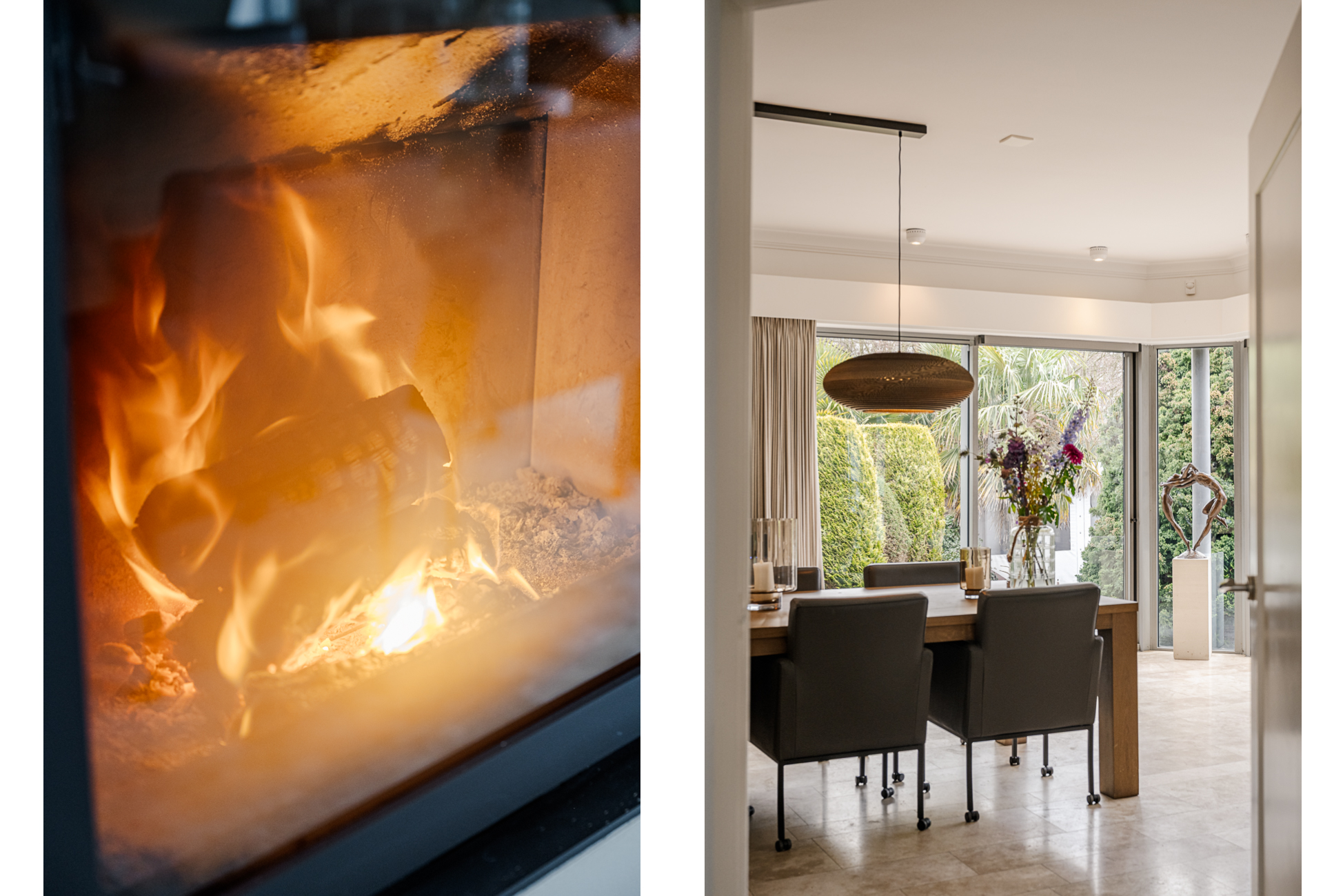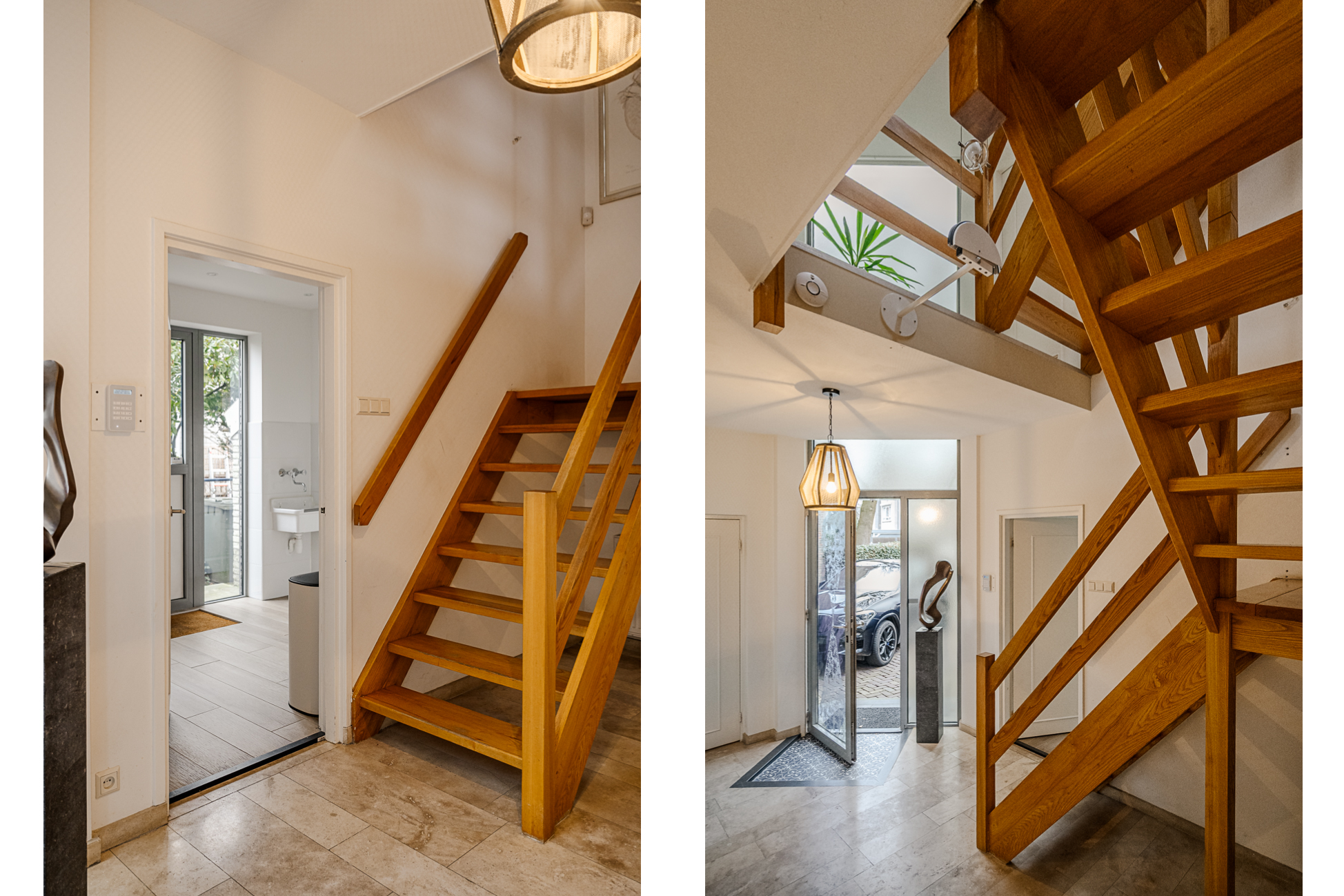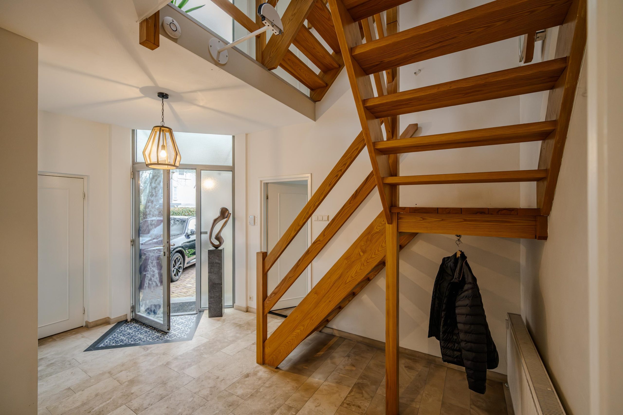 De begane grond ademt comfort. Vloerverwarming onder een in 2021 professioneel geschuurde, gereinigde en geïmpregneerde travertin vloer zorgt voor een warme en stijlvolle basis.