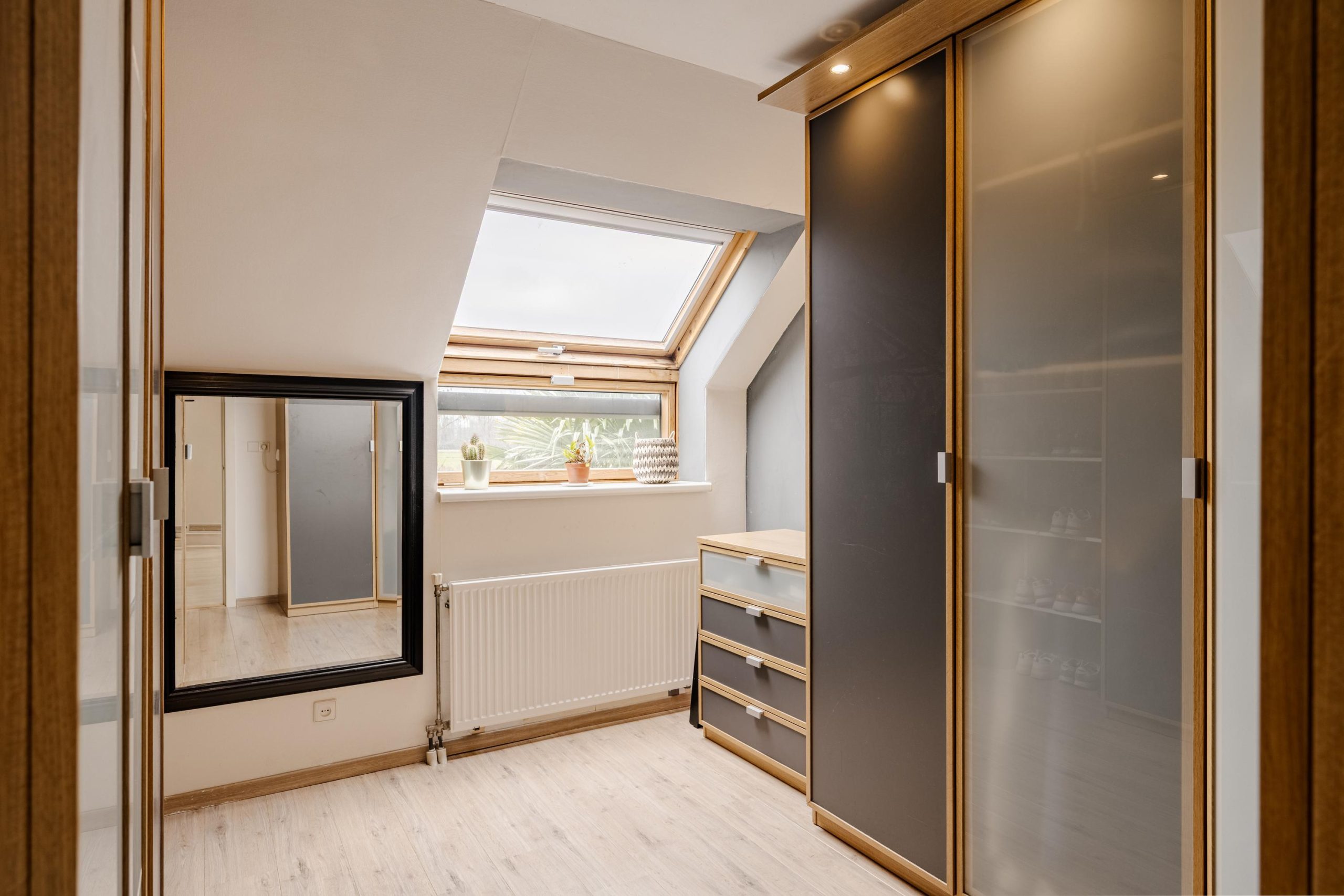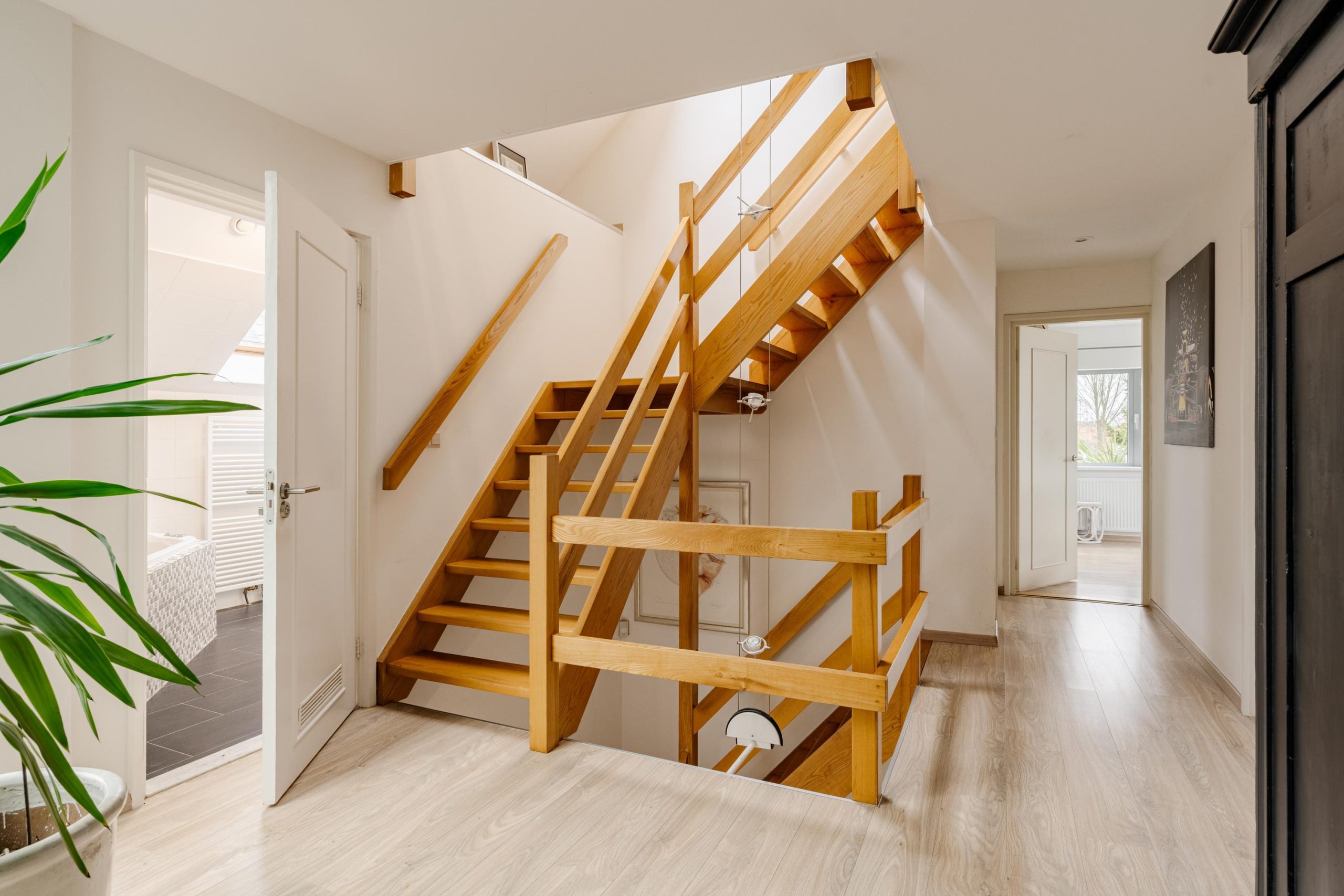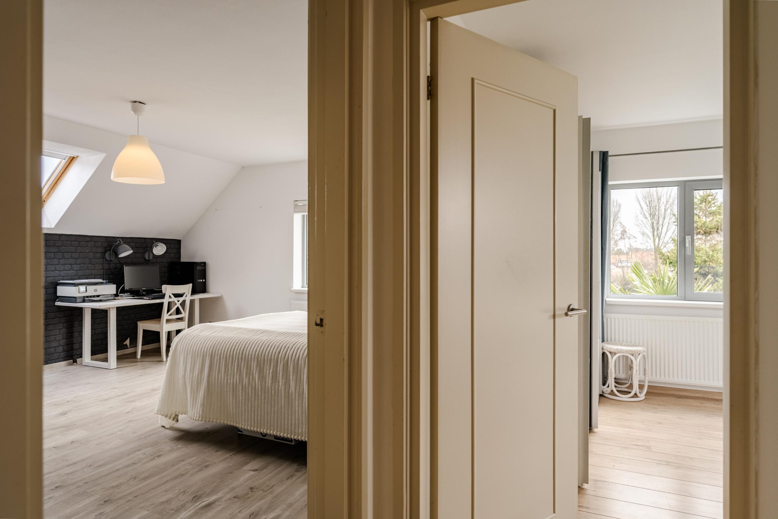 Op de bovenste verdieping bevinden zich nog twee volwaardige slaapkamers, waarvan één met een royale kastenwand. Er is bovendien ruimte om een dakkapel te realiseren voor extra licht en nog meer ruimtelijke beleving.