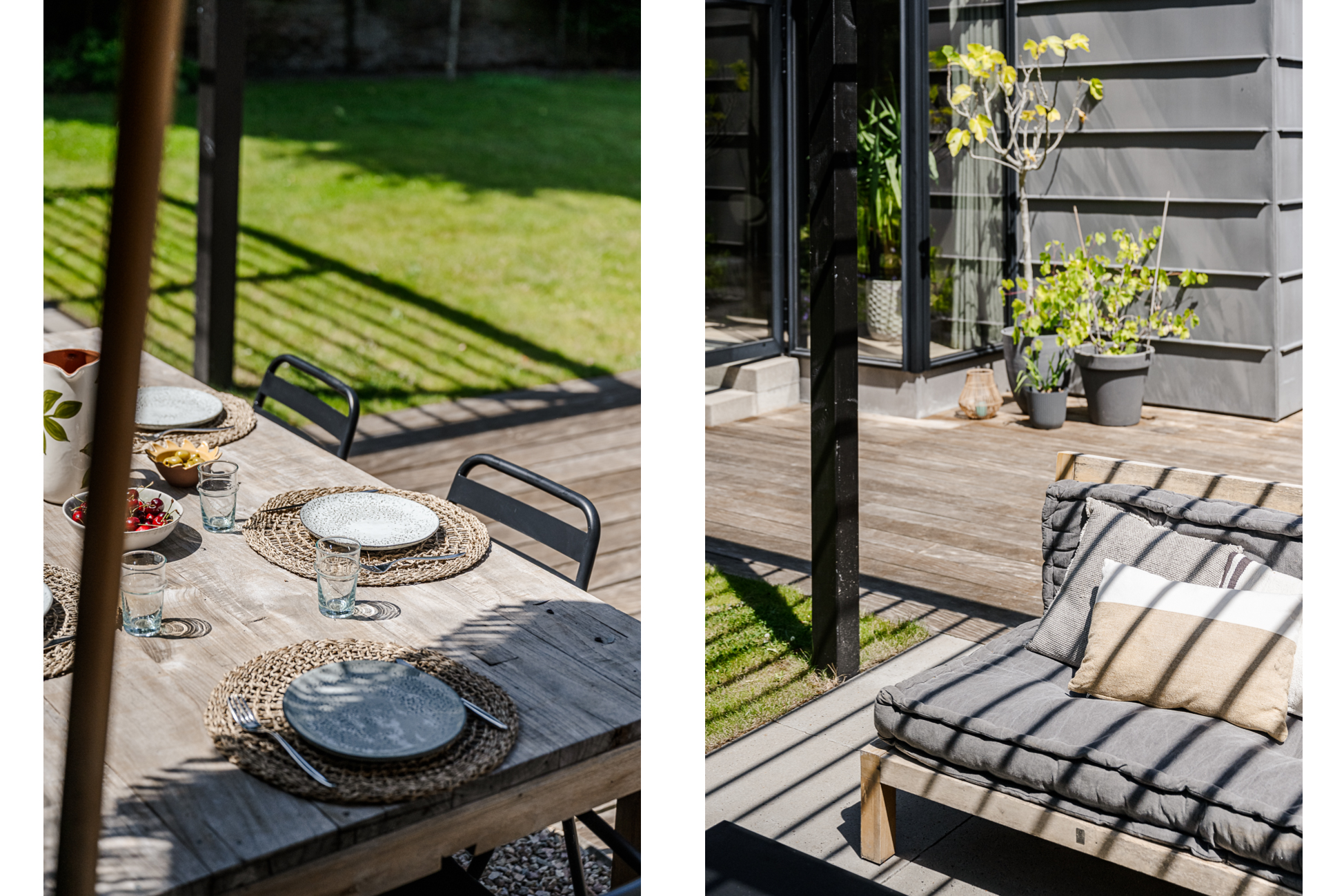 De voortuin is fraai aangelegd en biedt parkeerplek voor 2 auto’s. Via de houten schuur met veel bergruimte kom je in de fraai aangelegde tuin op het zuiden. Hier zit je de hele dag en tot laat in de zon en heb je veel privacy. In en om het huis geniet je alle seizoenen van de oase van stadsbos De Haarlemmerhout, een unieke locatie!