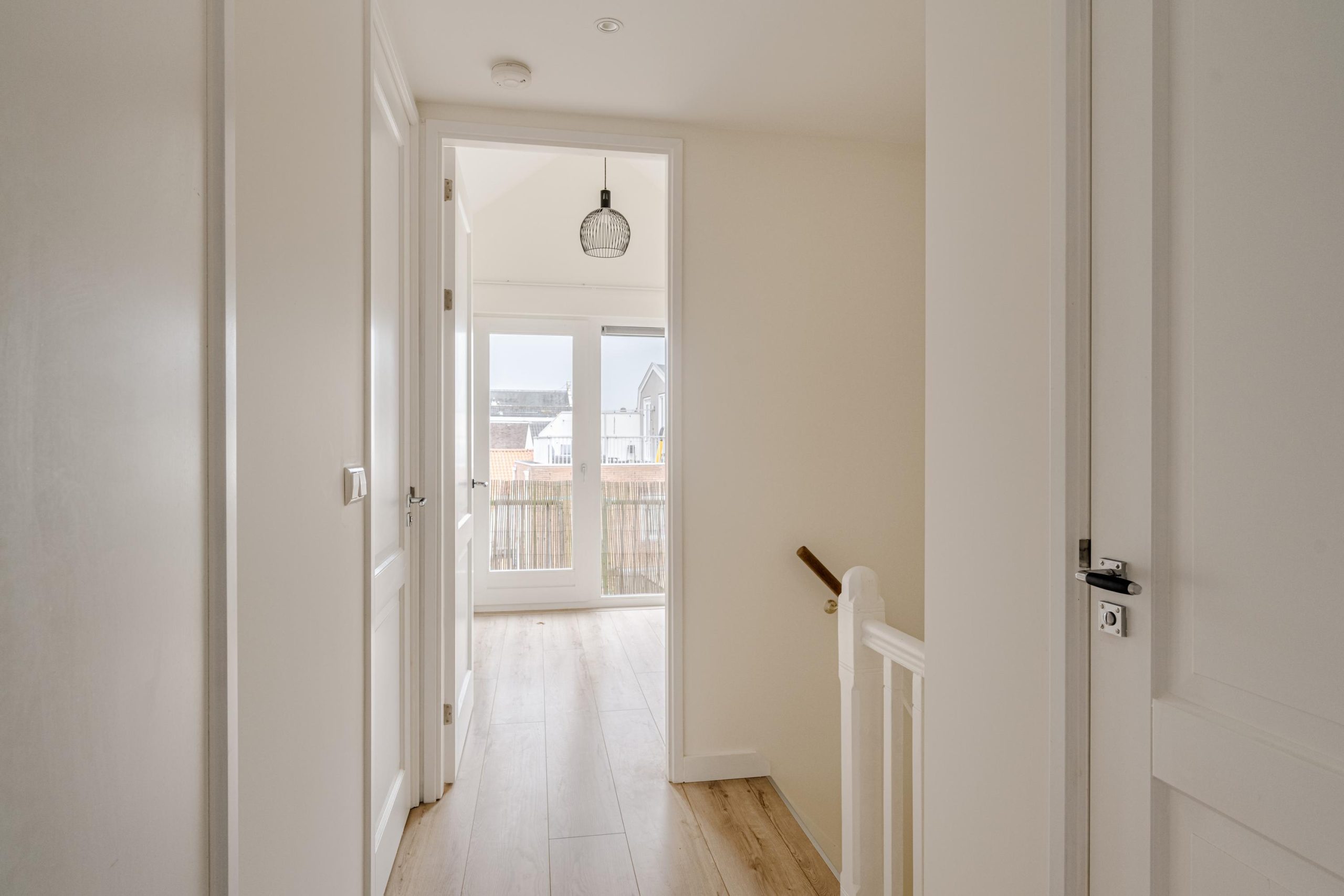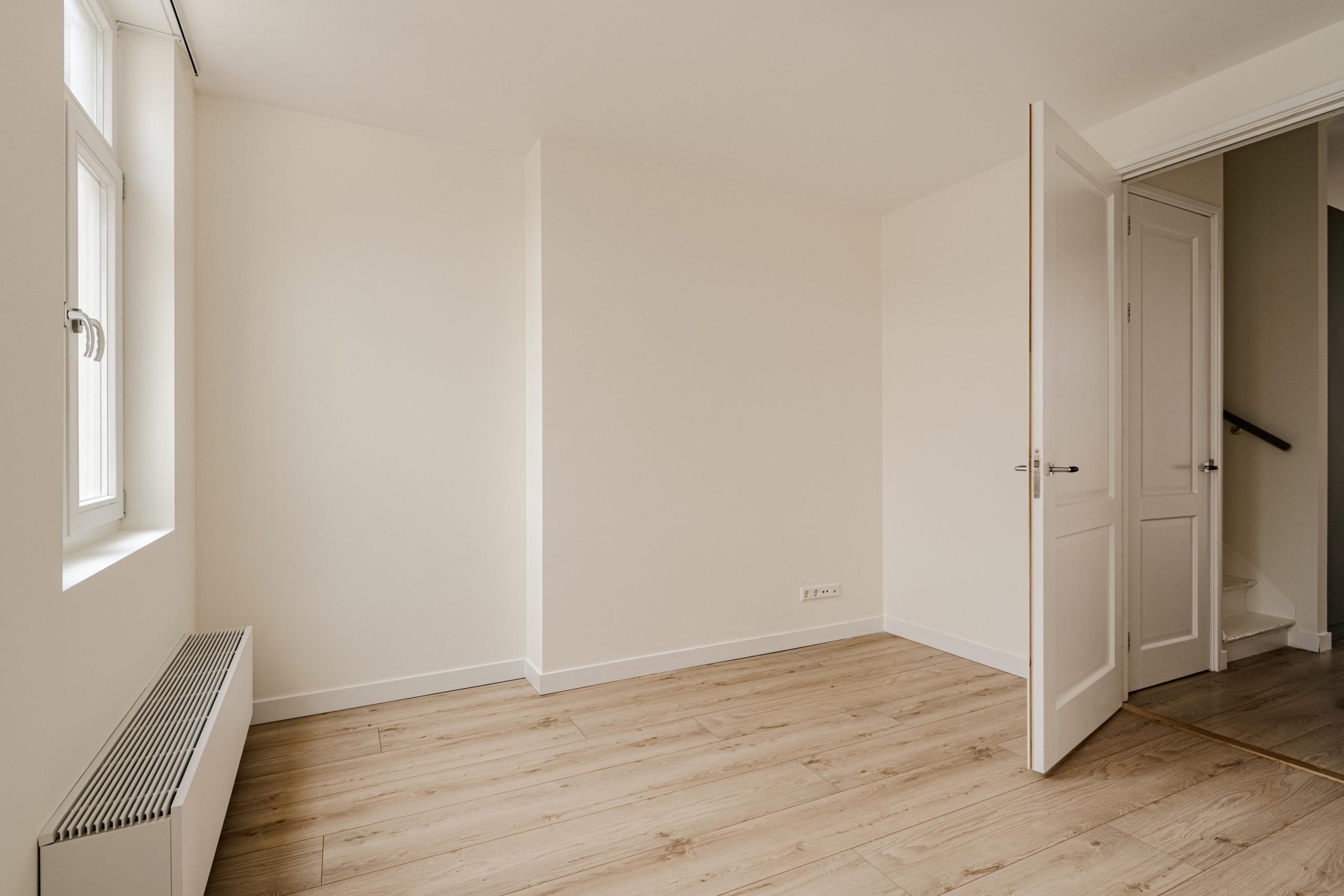 Via een open gang bereik je een apart toilet met fonteintje, een bergruimte met wasmachineaansluiting én een ruime slaapkamer aan de rustige achterzijde. Vanuit deze slaapkamer heb je toegang tot de brandtrap.