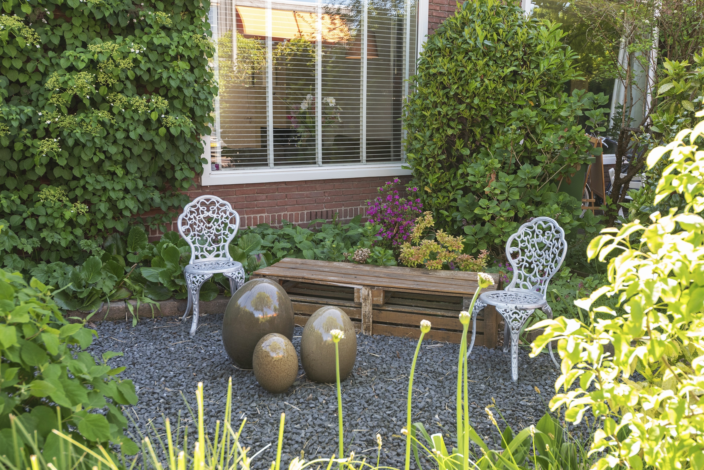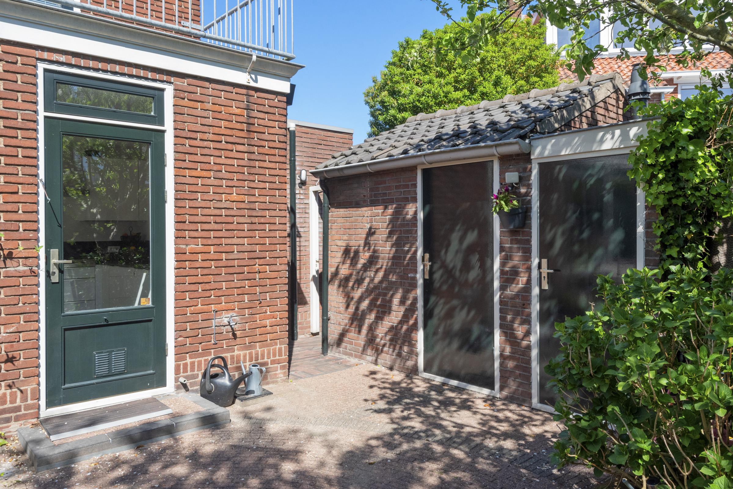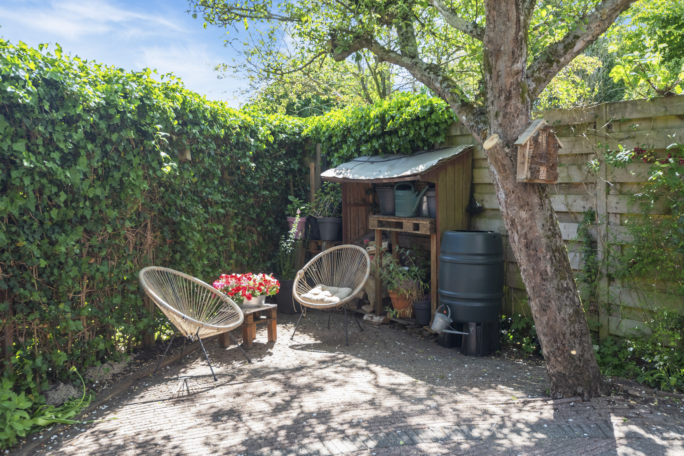 De achtertuin ligt ideaal op het zuiden en biedt volop zon en privacy. Een grote berging en een aparte kleine berging met de cv-installatie maken het geheel compleet. Een heerlijke plek om te ontspannen en te genieten van het buitenleven.