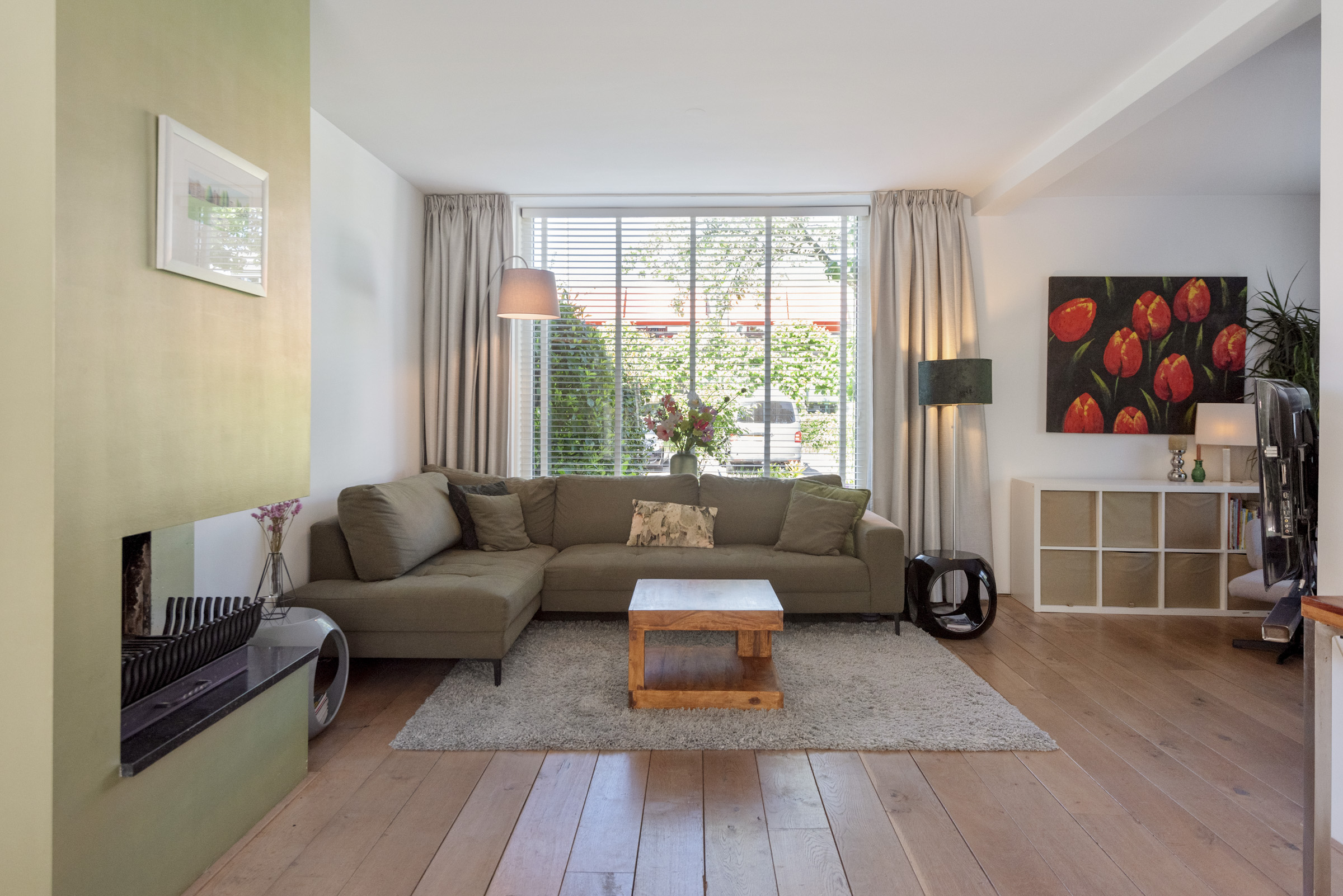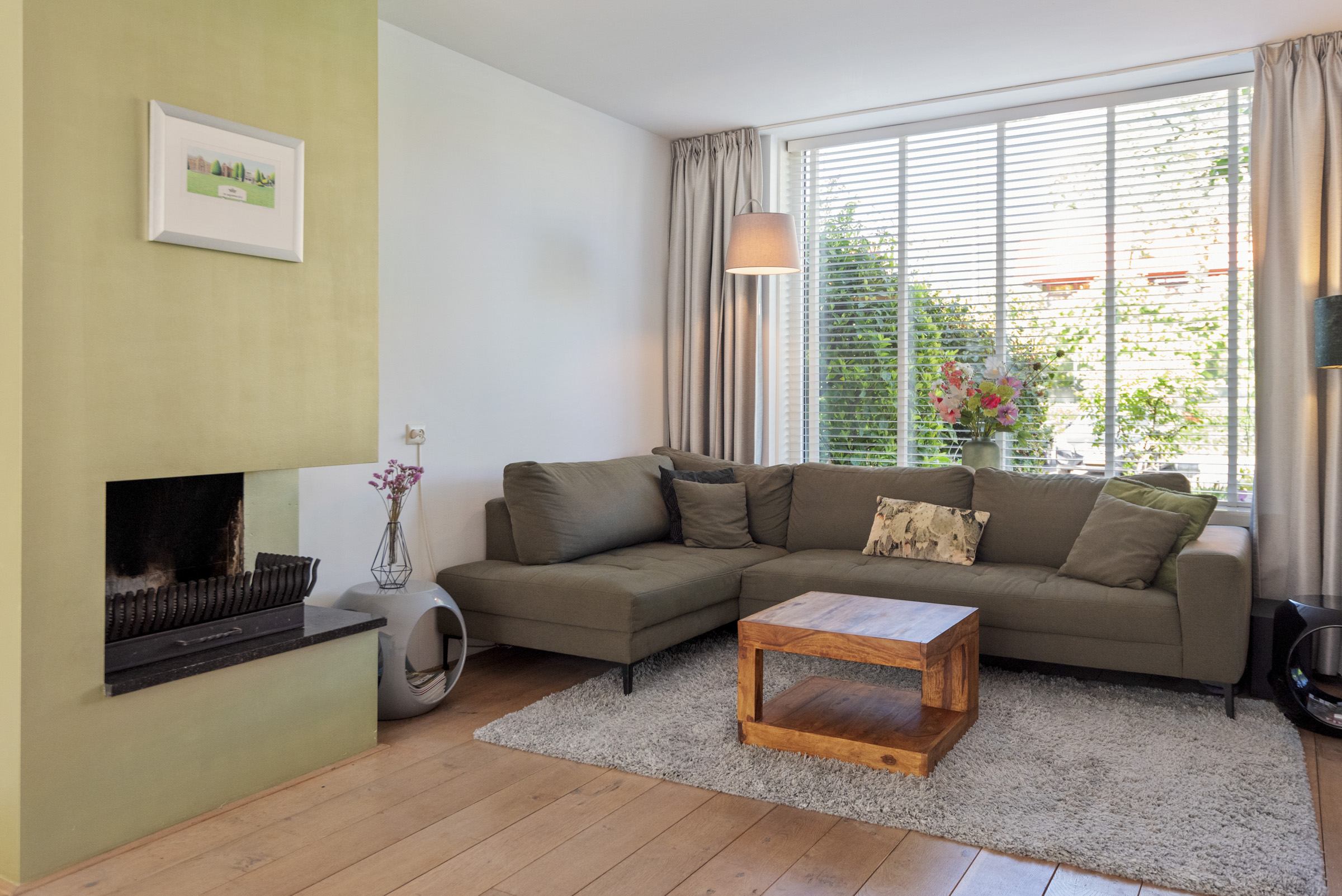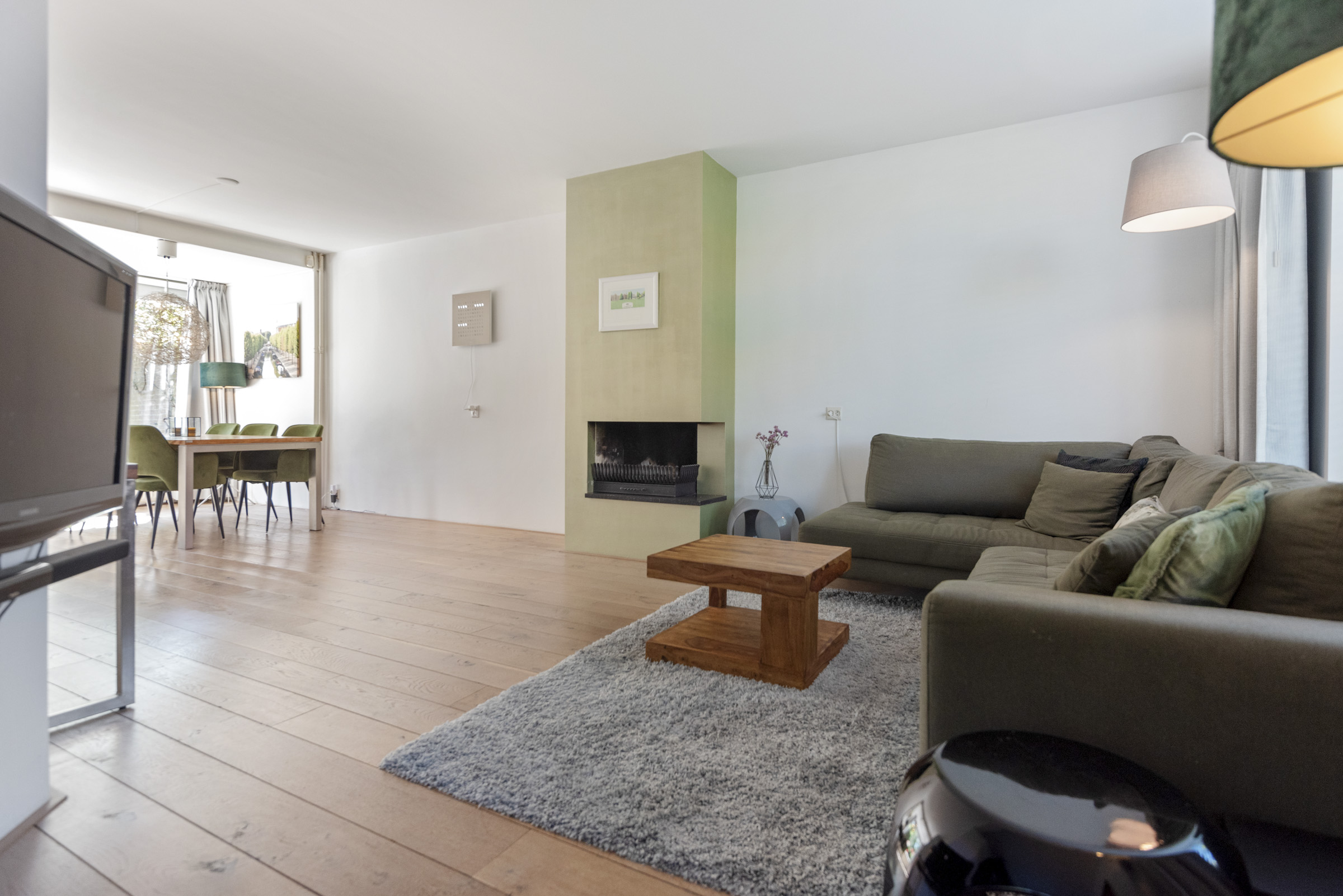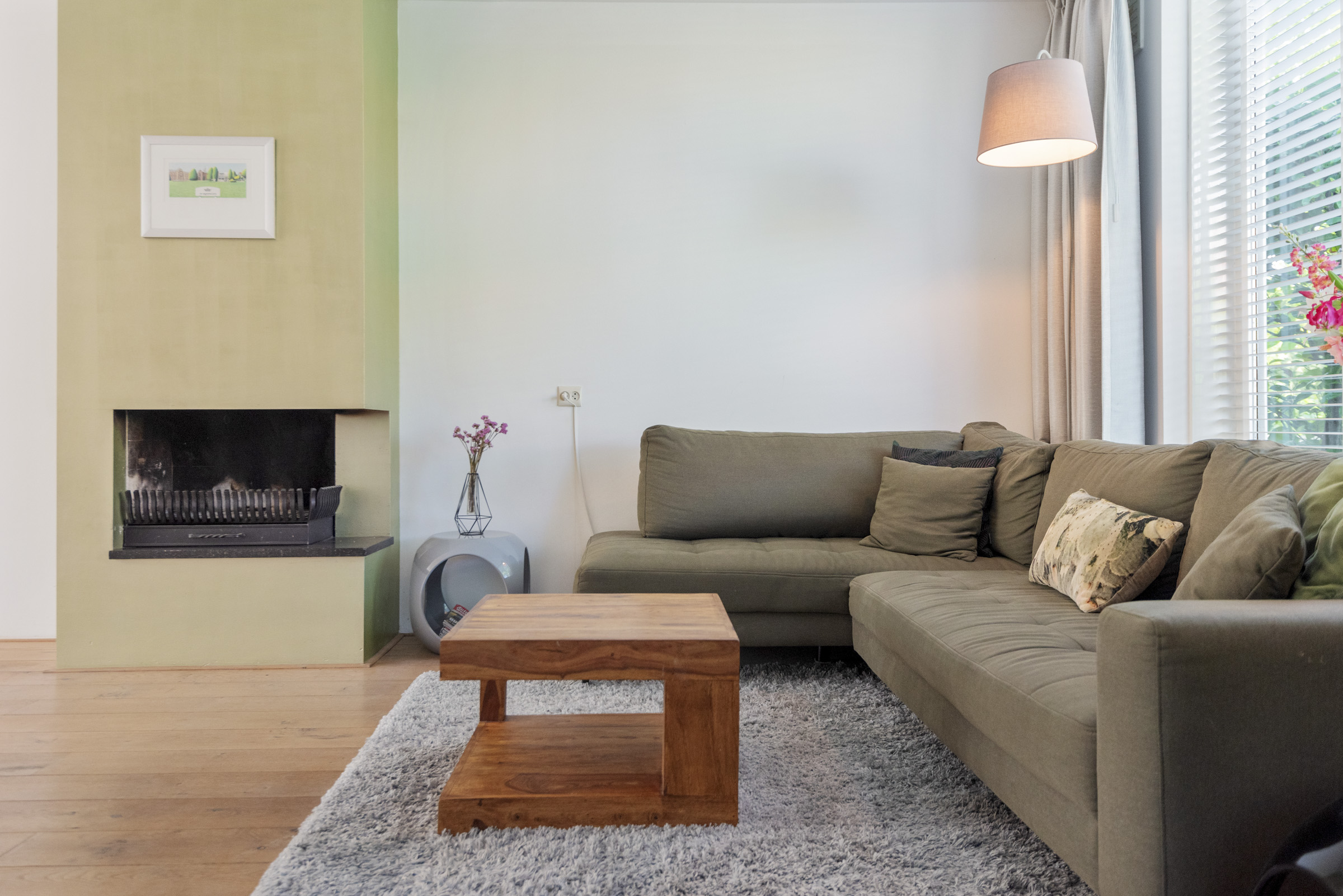• Lichte L-vormige woonkamer met open haard