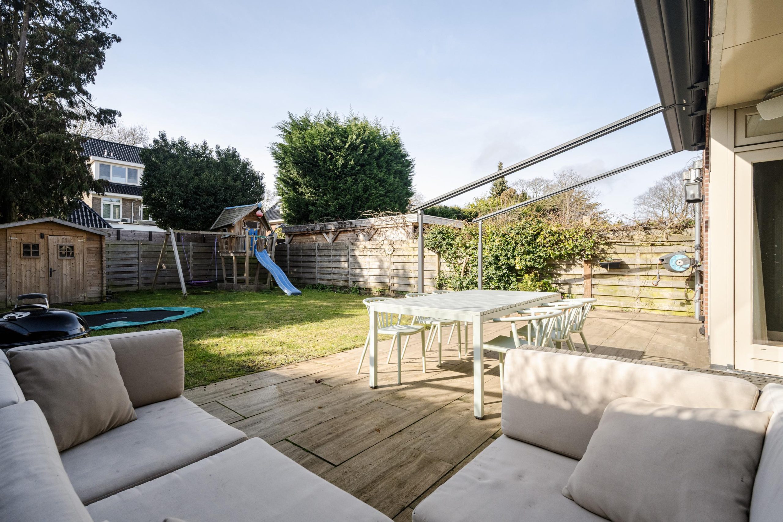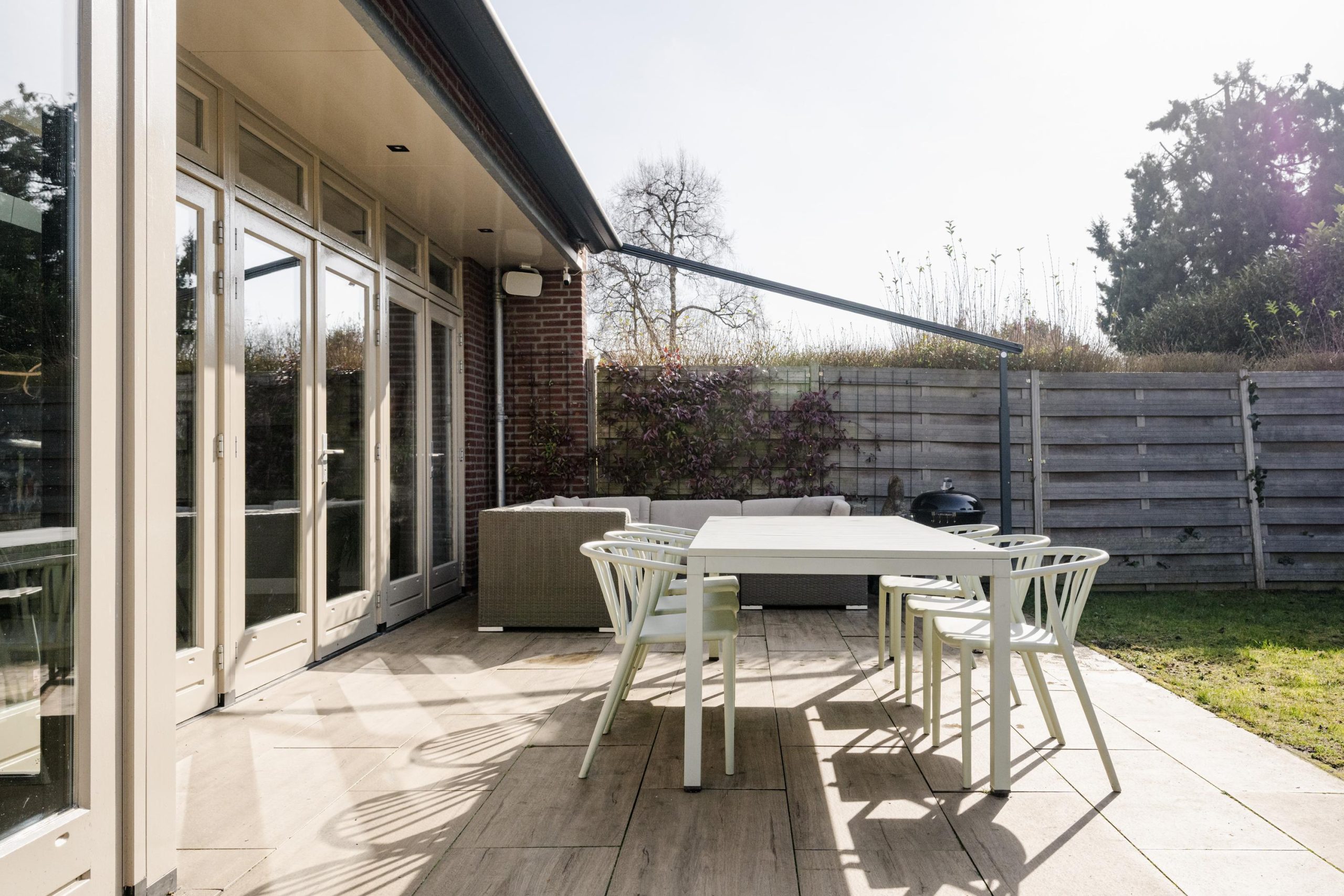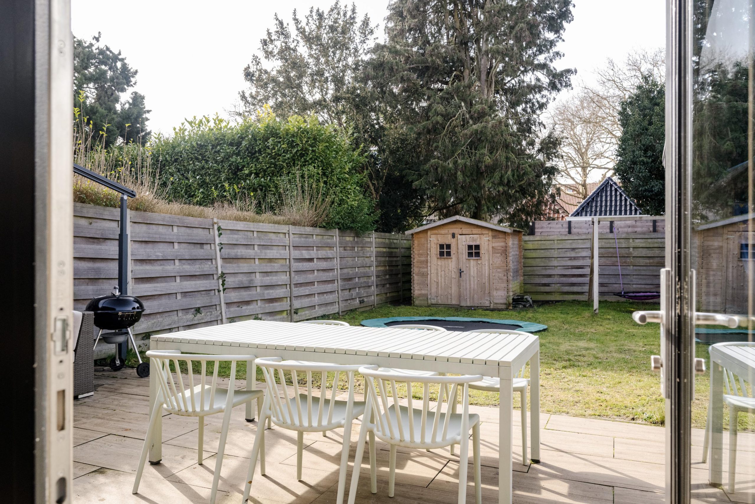 De achtertuin is gelegen op het zuidwesten en westen. Dat betekent zon van de middag tot in de avond. De tuin is breed opgezet en biedt alle ruimte om te spelen, uitgebreid te tafelen of lange zomeravonden door te brengen met vrienden en familie. Via de openslaande deuren wordt de tuin een natuurlijk verlengstuk van de woonkeuken.