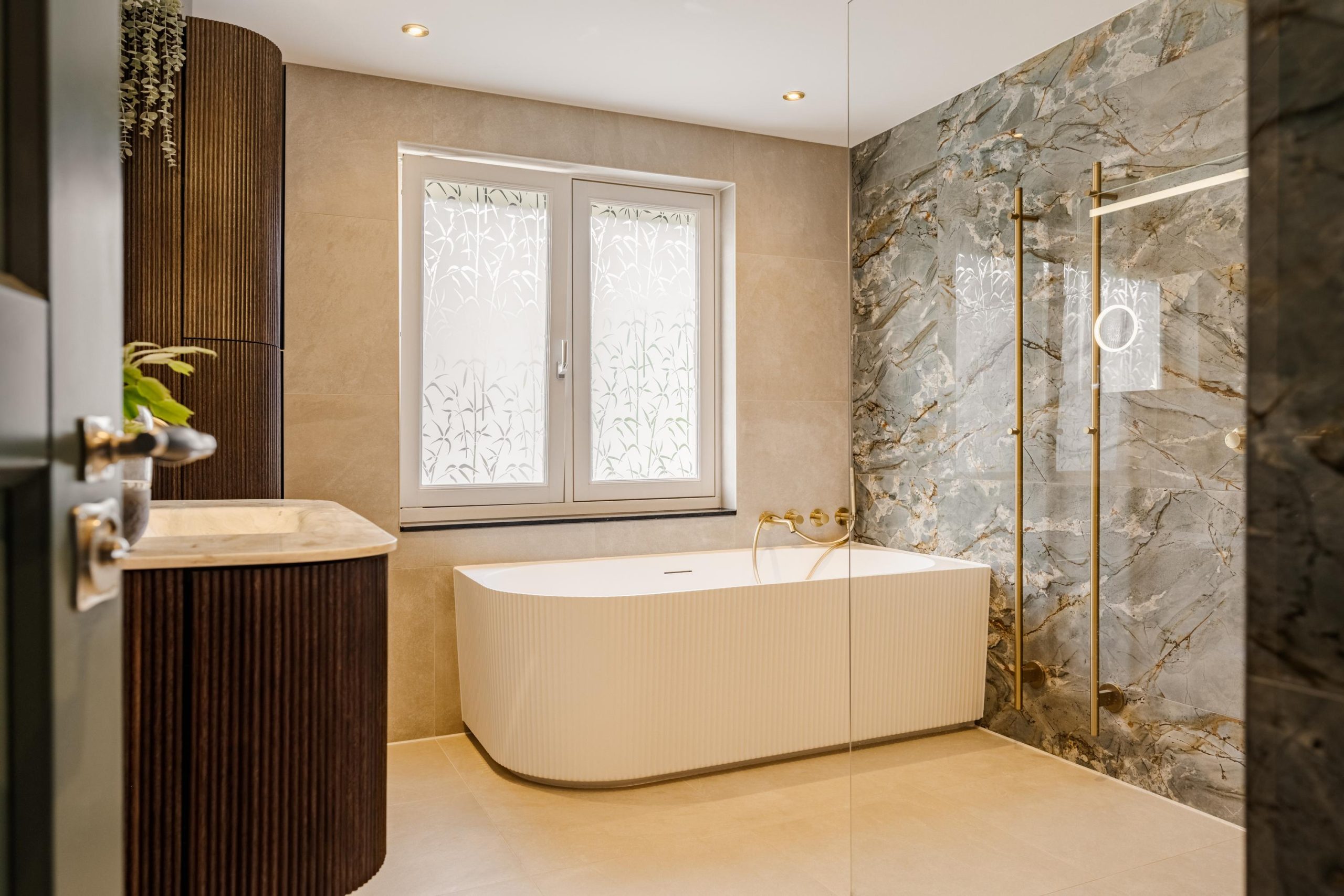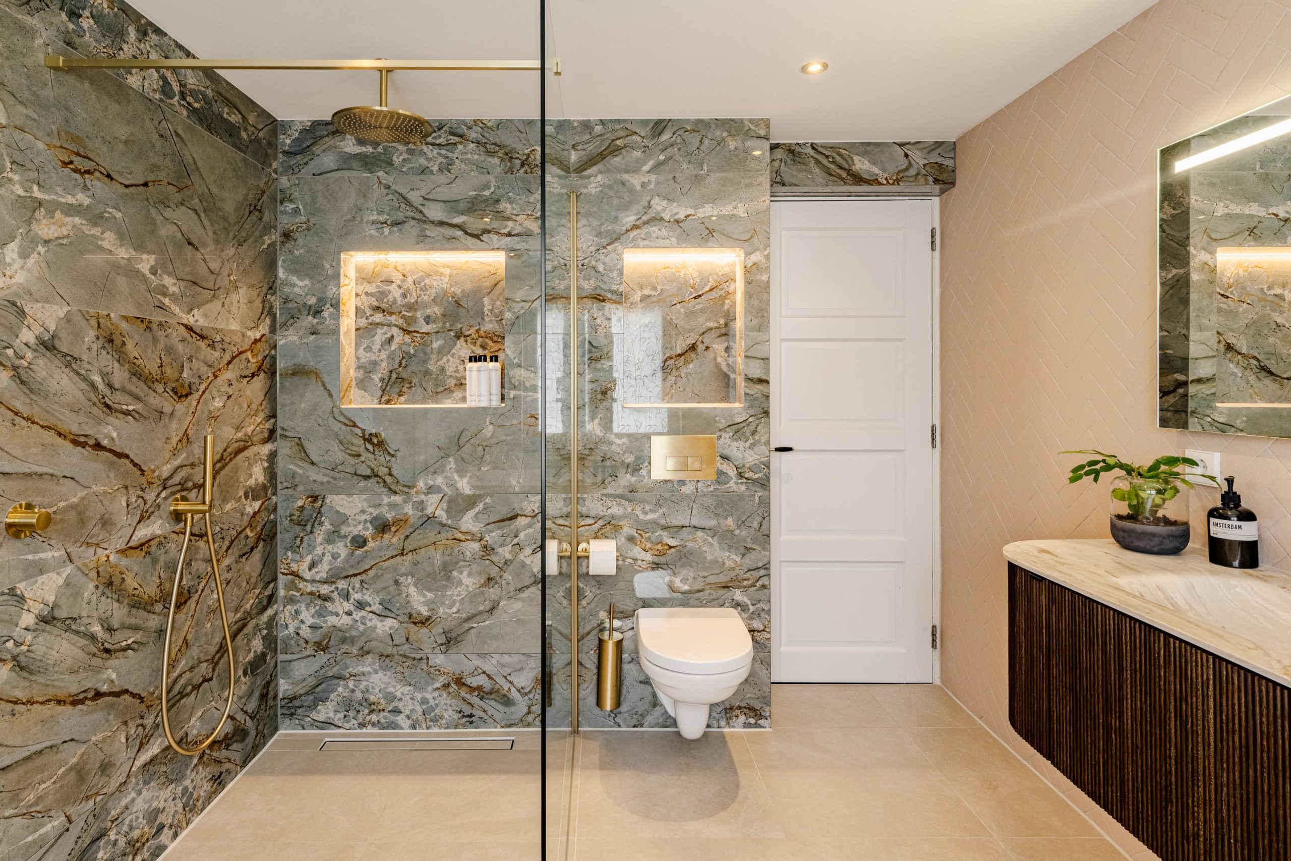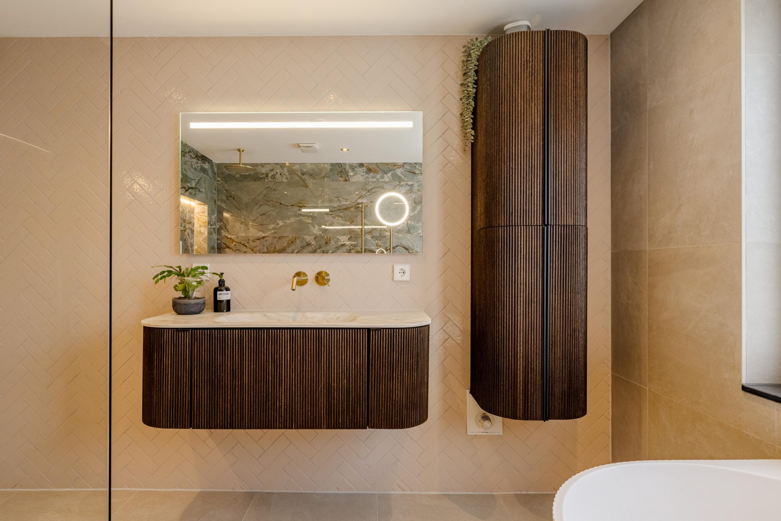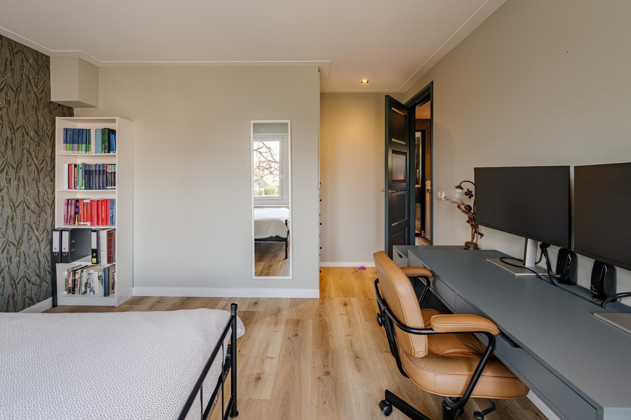 Aan de voorzijde bevinden zich twee slaapkamers met inbouwkasten. De royale hoofdslaapkamer aan de achterzijde beschikt over een praktische inloopkast en biedt rust en comfort. De luxe badkamer is ruim opgezet en voorzien van een ligbad, royale inloopdouche, stijlvol wastafelmeubel en tweede toilet. Een moderne ruimte waar comfort centraal staat.