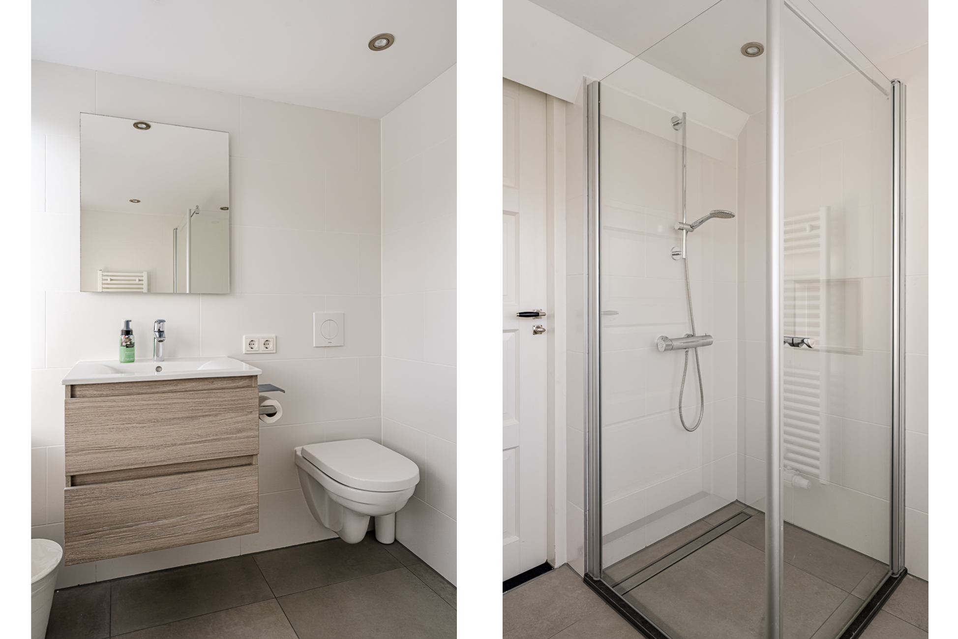 Dankzij twee dakkapellen is de tweede verdieping verrassend ruim en licht. Hier bevinden zich nog twee volwaardige slaapkamers, volledig geïsoleerd en voorzien van kunststof kozijnen met dubbelglas. Daarnaast is er een tweede badkamer met inloopdouche, toilet en wastafelmeubel. Ideaal voor grotere gezinnen of gasten.